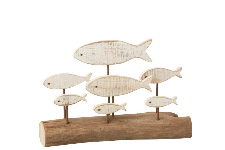 J-Line 7 Vissen op Stam Eikenhout Wit 44x16x29 cm