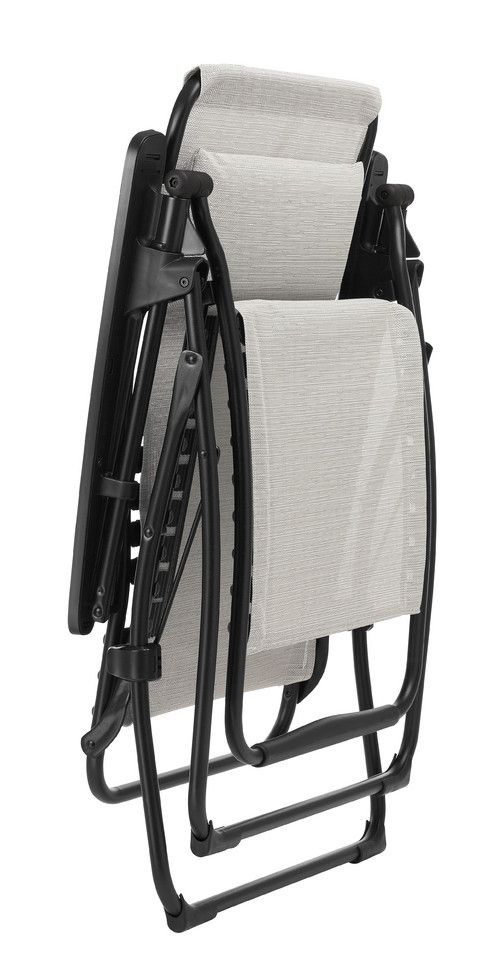 • Revolutionaire bevestiging: clips van elastomeer die het doek aan de buizen bevestigd. Hierdoor is het geheel ergonomisch verantwoord, biedt het een steviger comfort en een excellente ondersteuning van de rug. Dit Lafuma-gepatenteerde systeem vergemakkelijkt het vast- en losmaken en dus tevens het onderhoud van de stoel