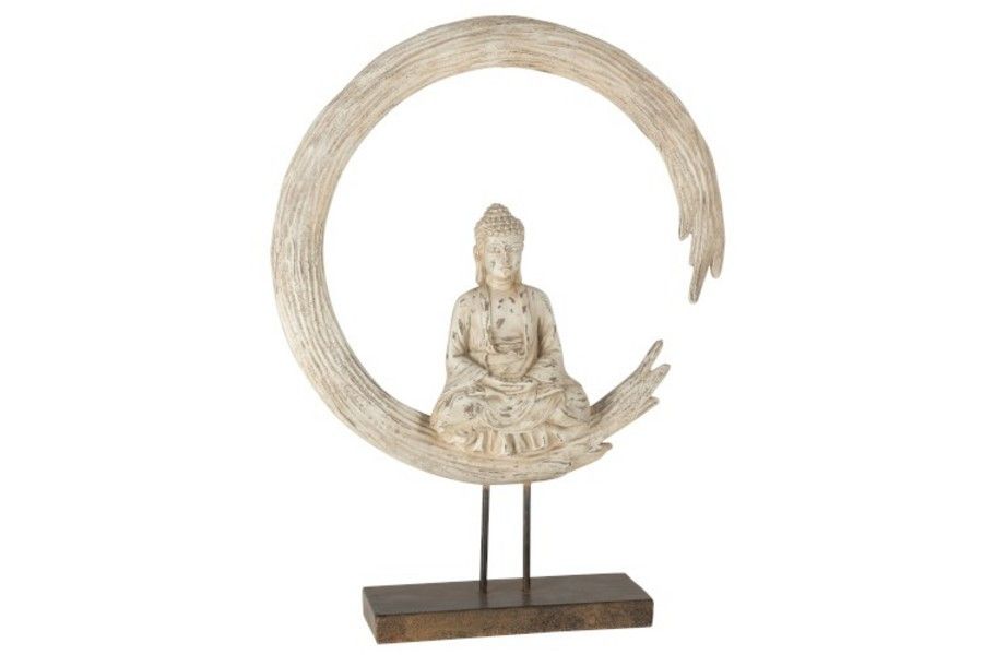 J-Line Boeddha in Cirkel op Voet 46.8x13.2x62.5 cm - Beige