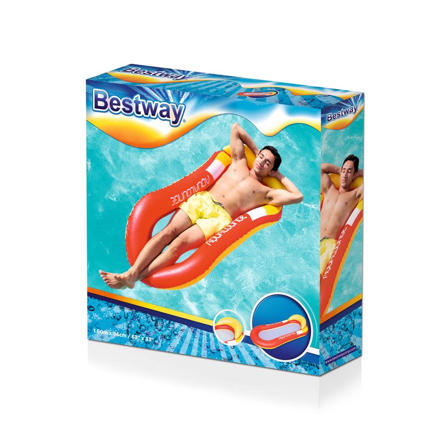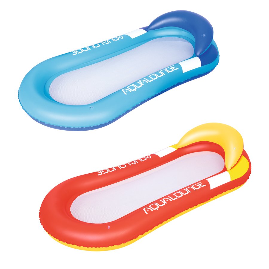 Relax lounge-bed van Bestway voor op het water. Heerlijk verfrissend door de netbodem. Met 2 luchtkamers en comfortabele hoofdsteun. Voor 1 volwassene met een maximum gewicht van 90 kg. In verkrijgbaar in 2 kleuren: rood en blauw en met reparatie patch.