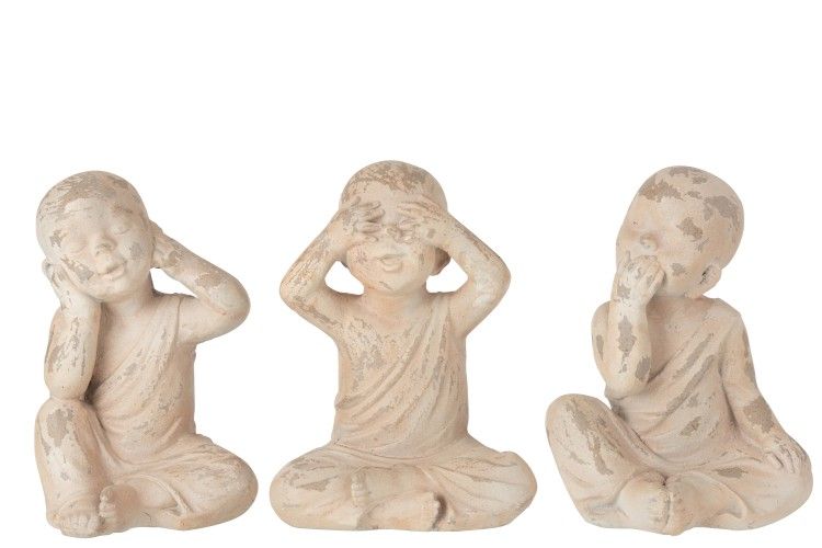 J-Line Monnik Horen/Zien/Zwijgen 23.8x19.8x31.2 cm - Beige/Zalm - assorti