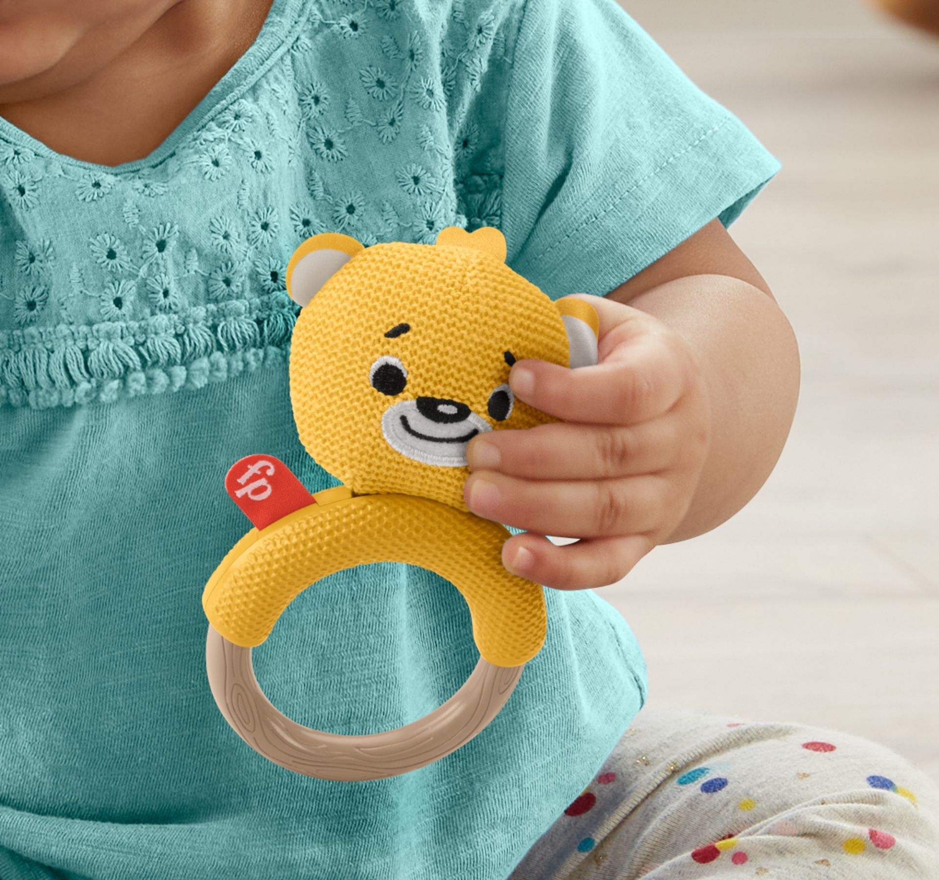 Je baby kan tijdens het spelen rammelen en kauwen met deze gebreide bijtringen van Fisher-Price! Elk bijtspeeltje heeft een lief, geborduurd dierengezichtje en een grappig geluidje dat je baby kan ontdekken. De stijlvolle bijtringen zijn BPA-vrij. Verzamel alle gebreide bijtringen voor nog meer kauwplezier en zintuigprikkelende speelmogelijkheden.