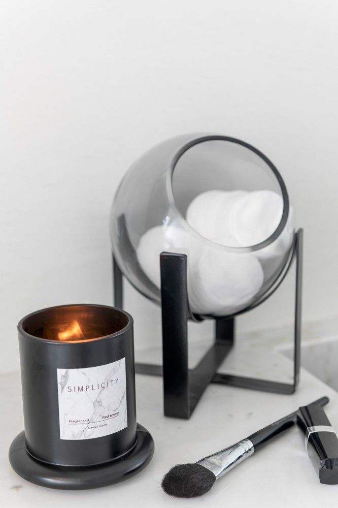 J-Line Vaas Rond Glas op Metalen Voet 20x20x23.5 cm - Grijs