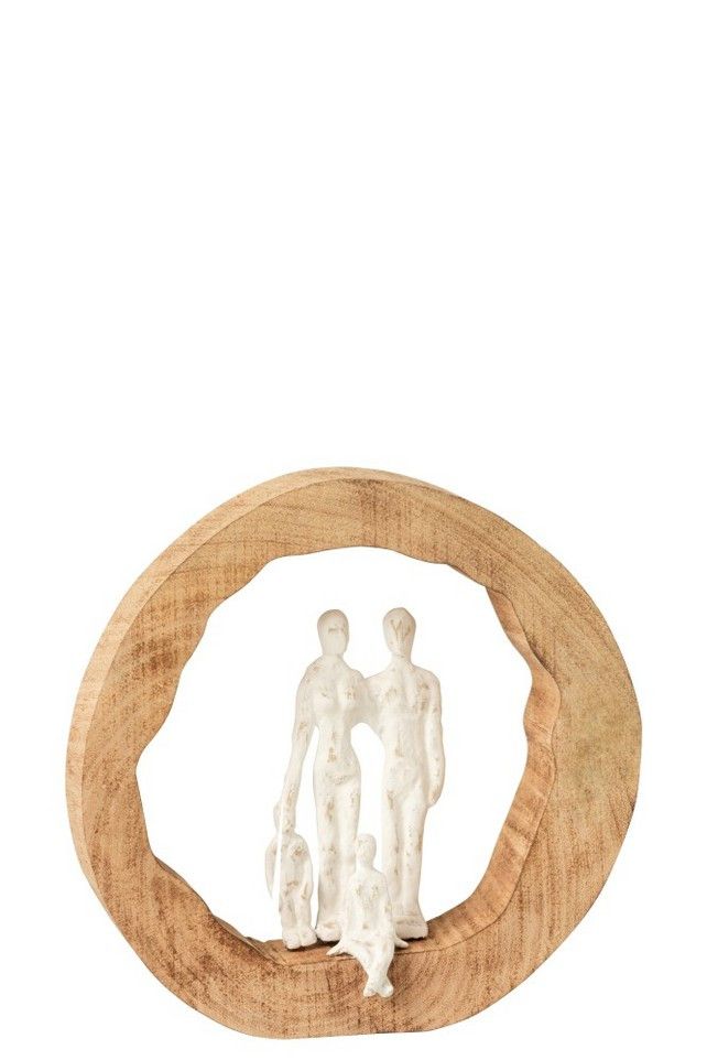 J-Line Familie in Ring 29.5x6.5x28.5 cm Mangohout/Aluminium - Naturel/Wit