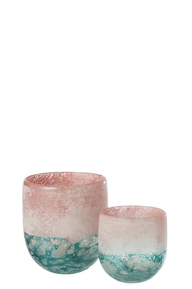 J-Line Windlicht Blush Glas Roze/Azur 13x13x15 cm
