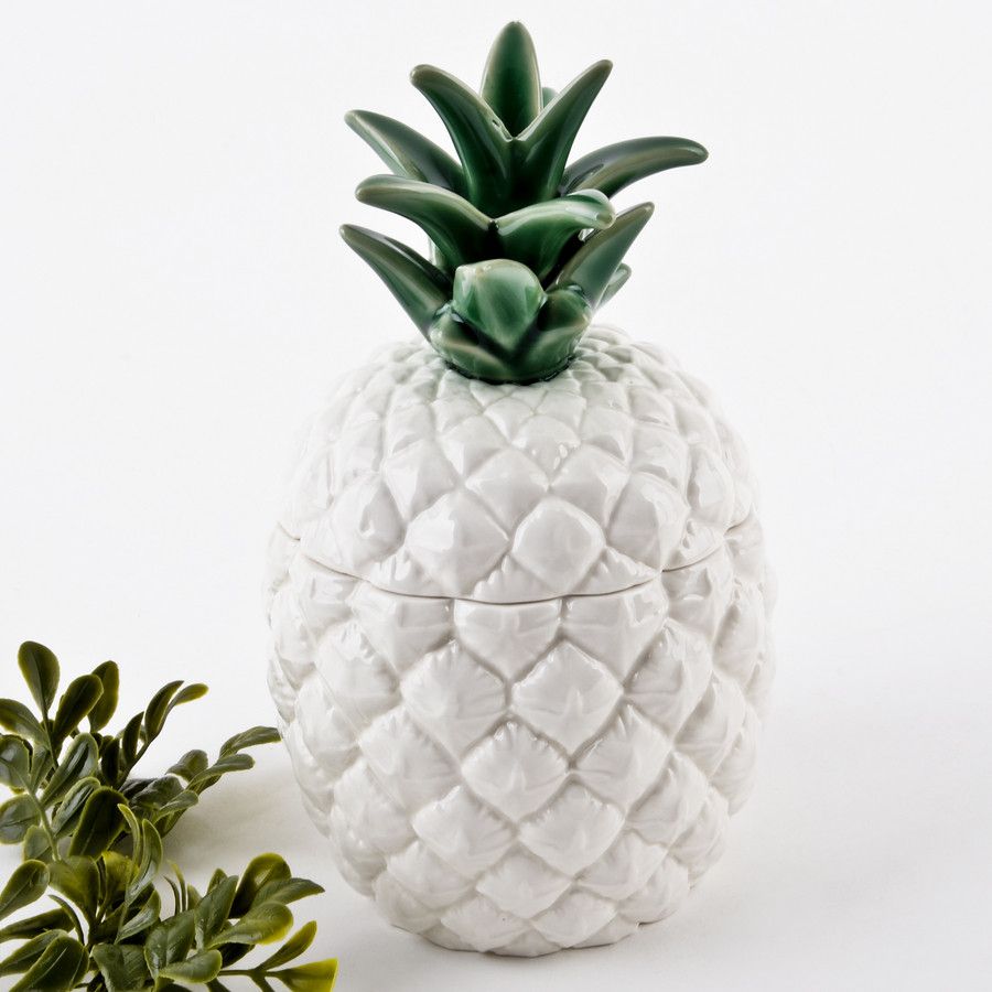 BEWAARPOT ANANAS - PORSELEIN 20x12x12cm - WIT/GROEN