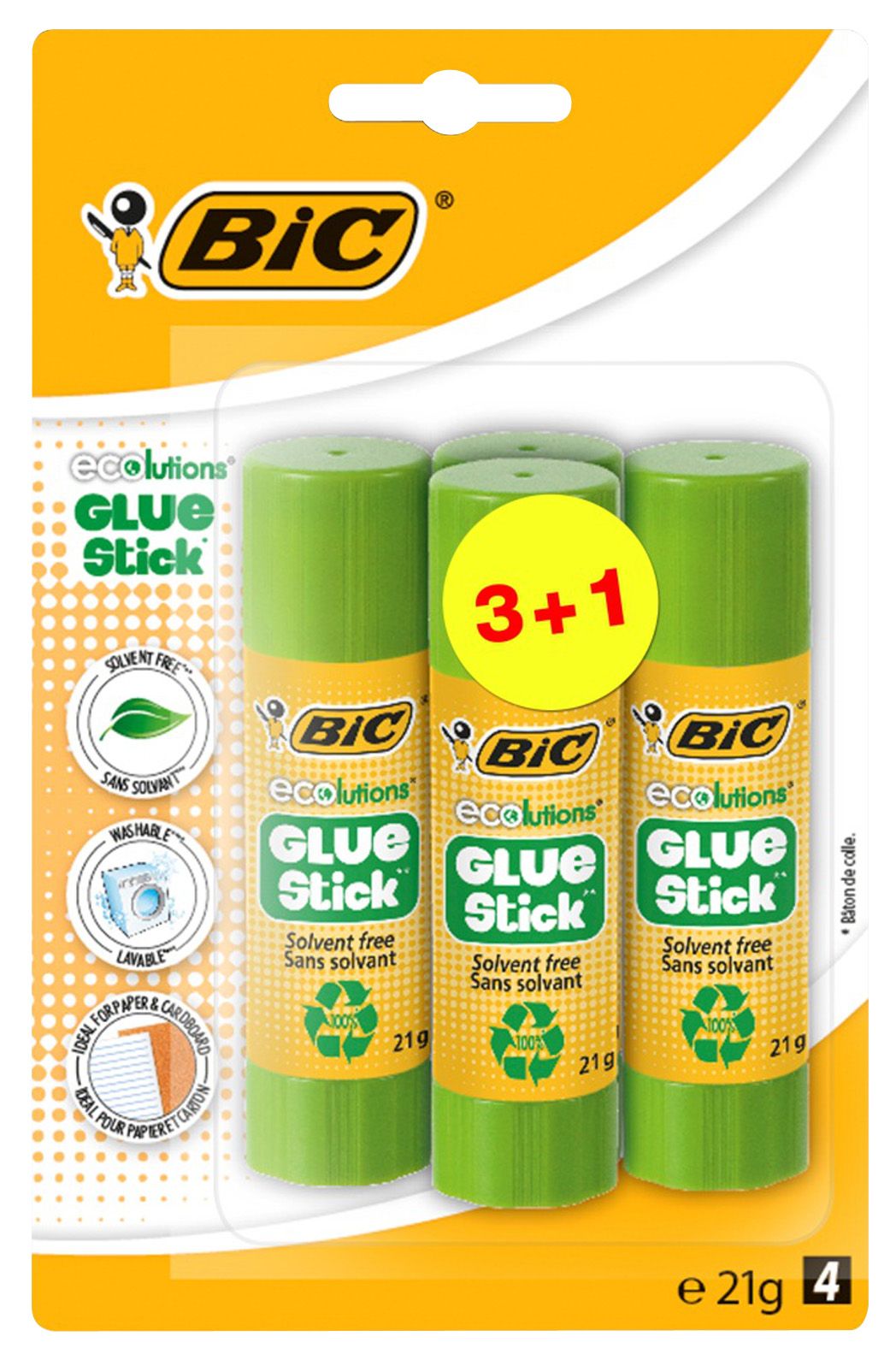 Bic Ecolutions Glue Stick Lijm 21gram 3+1 Gratis - Blister