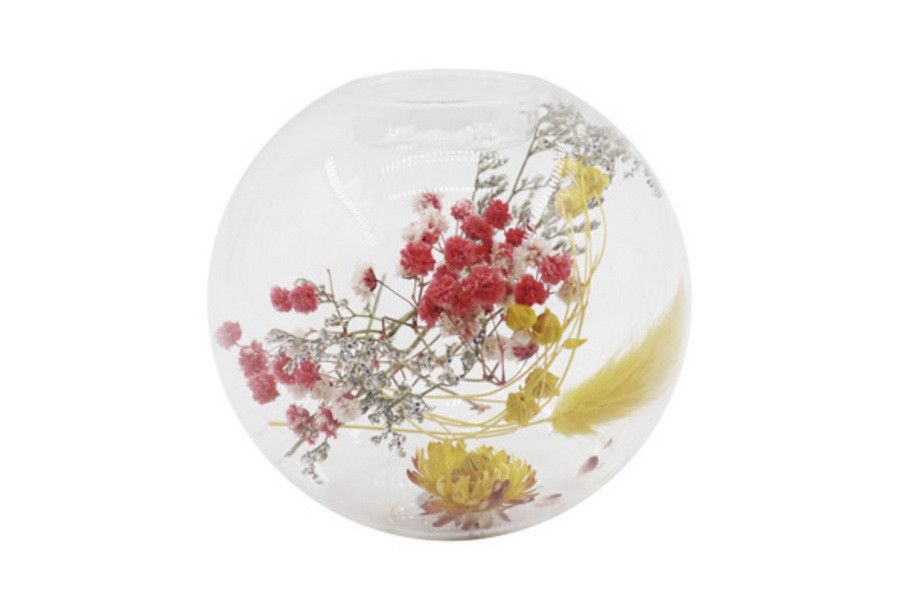 Cosy@Home Windlicht Rond Glas Bloemen 11.4x11.4x10.4 cm