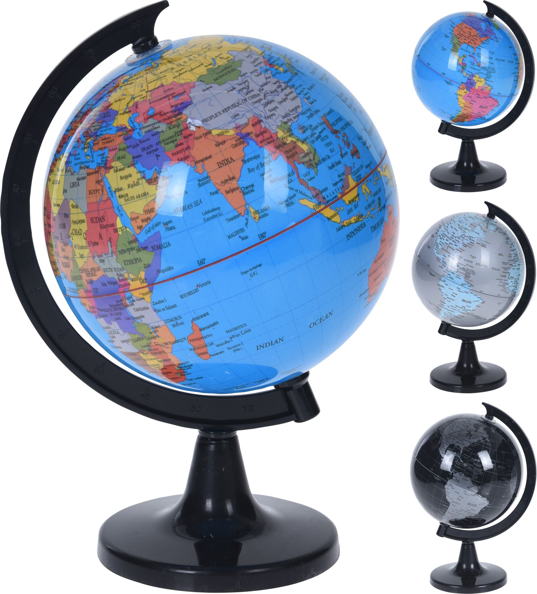 Wereldbol op Voet 14x23cm Blauw/Zwart/Zilver Assorti