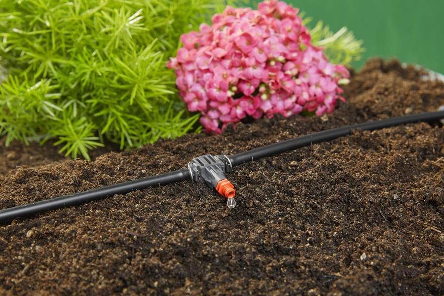Met het Micro-Drip-System druppelirrigatie kan de waterhoeveelheid per plant exact worden gedoseerd, zodat er geen water verloren gaat. -