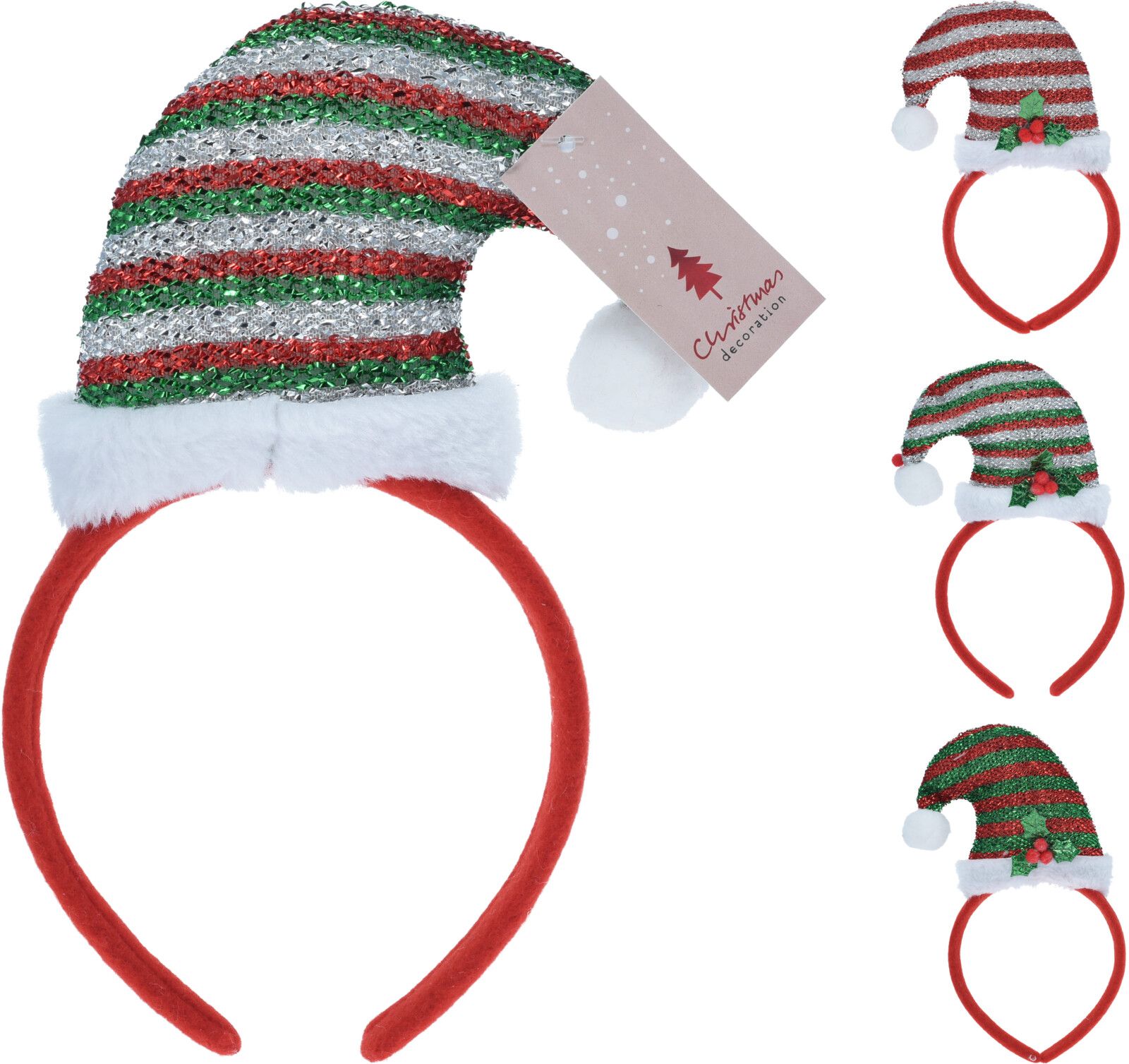 Diadeem met Kerstmuts Pailletten 22cm - assorti - prijs per stuk