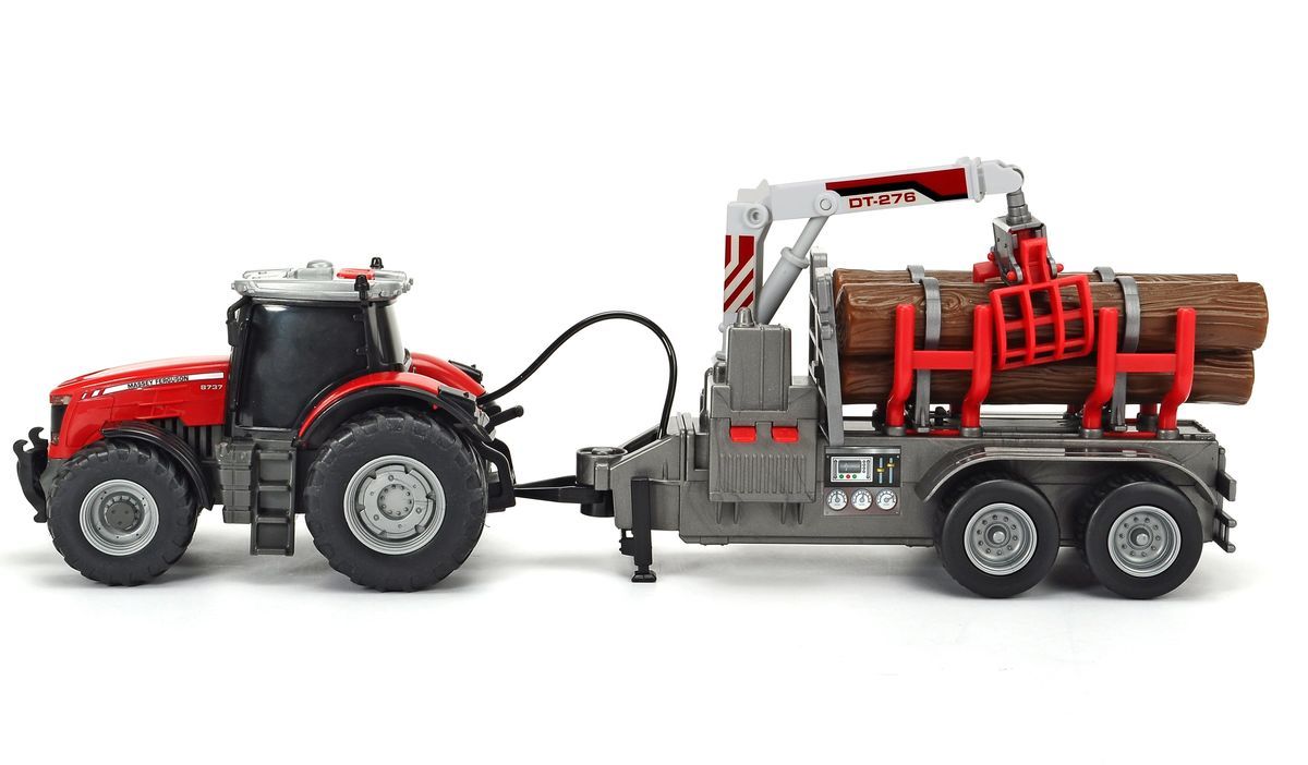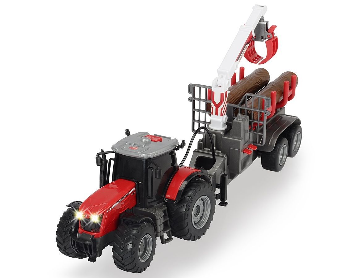 Dickie Tractor Massey Ferguson 8737 met Bomen Transport, licht en geluid, 41 cm