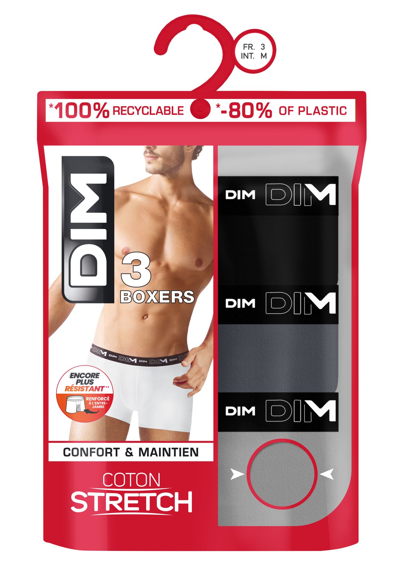 Dim Boxershort Heren Multi Coton 3 stuks Zwart/Graniet/Grijs - maat XL