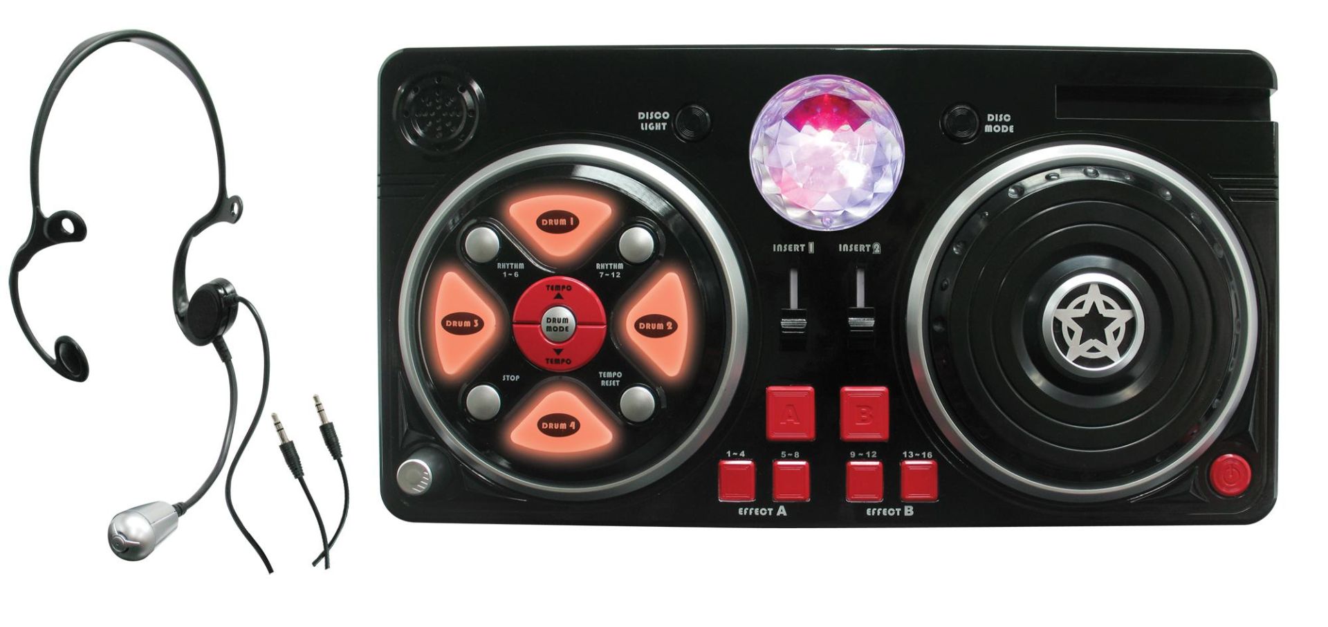 Disco DJ Mixer met hoofdtelefoon micro, discobal, ipod of mp4 aansluiting, Zwart