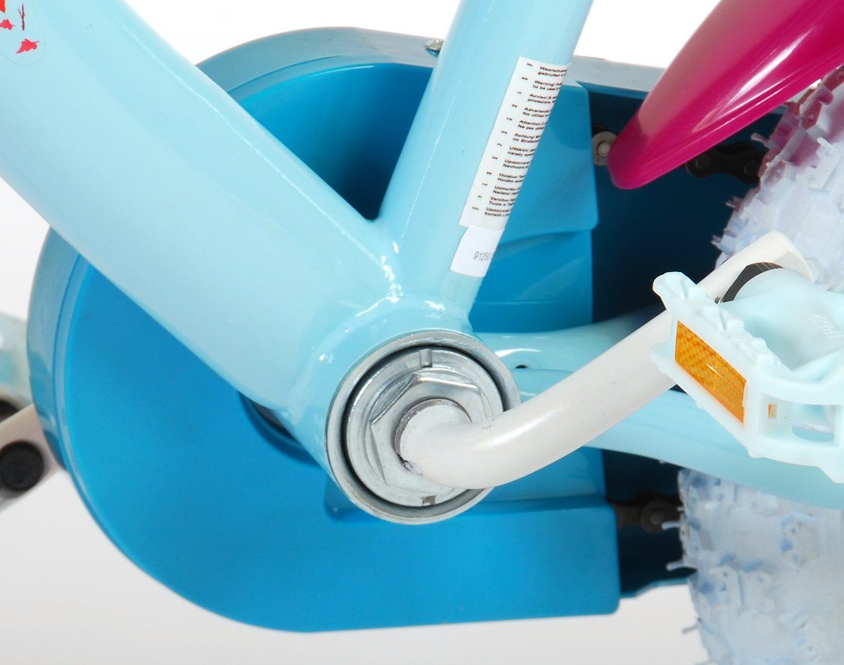 Deze leuke meisjesfiets is perfect voor echte Disney Frozen-fans! Hij heeft een mooie blauwe kleur met allerlei prints van Frozen. In het poppenzitje neem je een favoriete pop of knuffel mee en in de mand extra bagage. Verder is de fiets voorzien van zijwieltjes, twee handremmen en een dichte kettingkast. Welk meisje wil deze fiets nu niet?