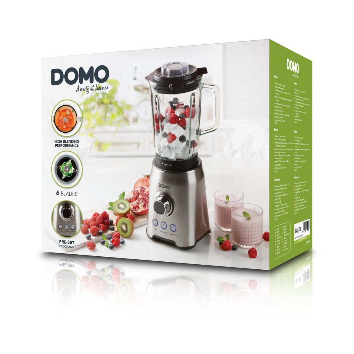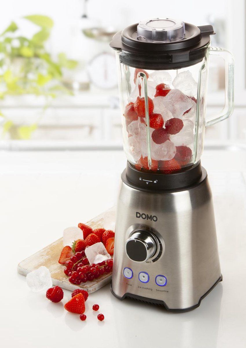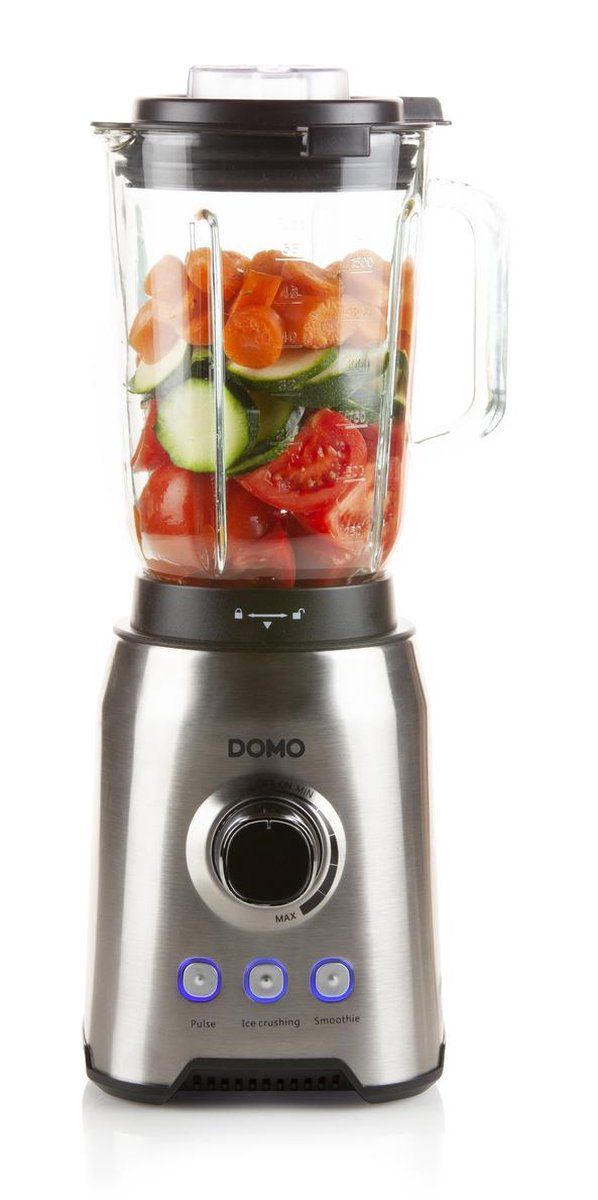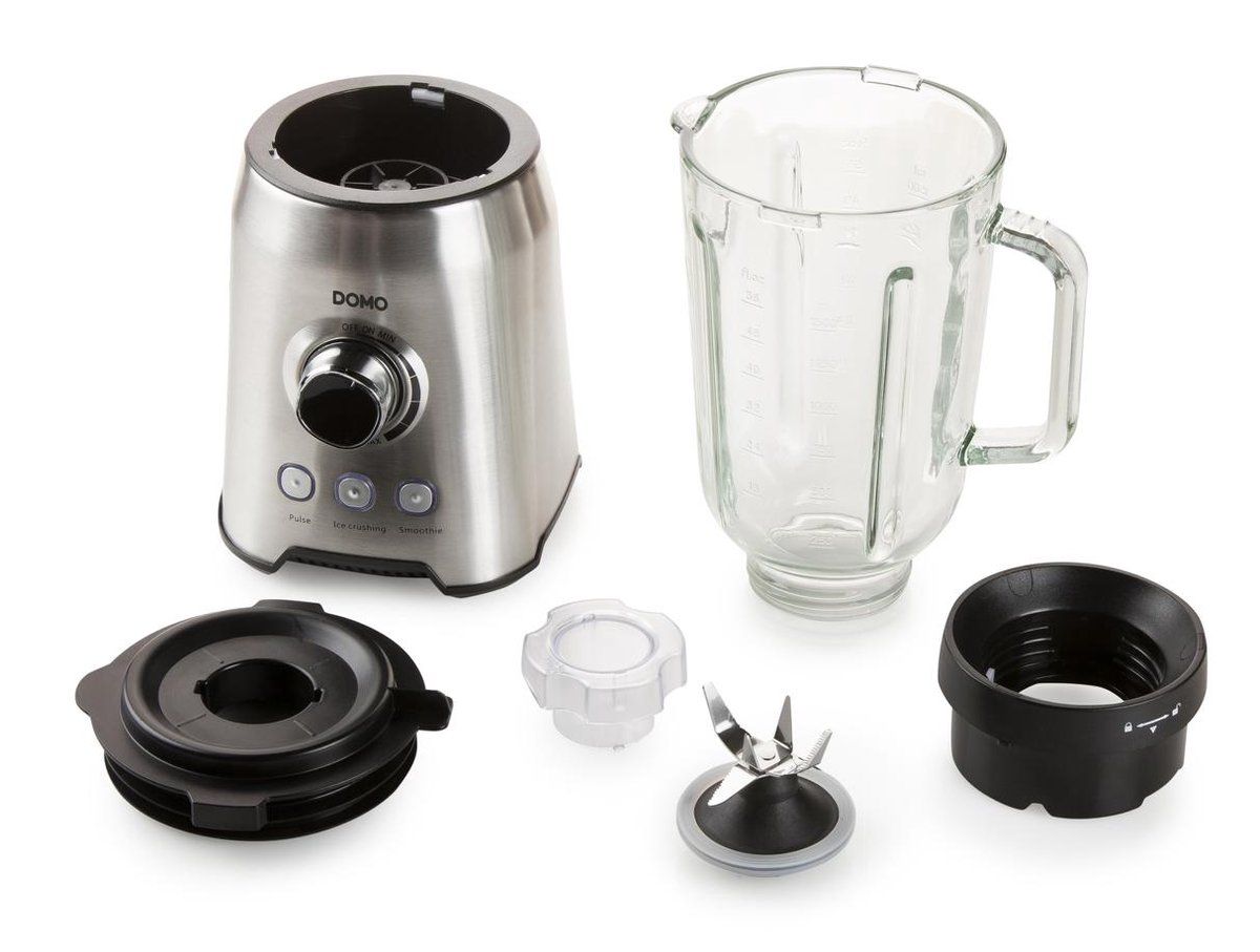 Domo DO710BL Blender met glazen kan 1.5 Liter, 1000 Watt, mes 6 bladen