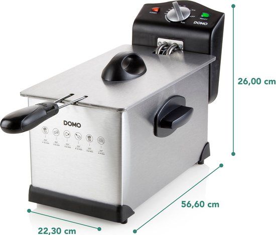Domo Friteuse DO514FR Zilver, 2000 W. 3 Liter, koude zone, inox,