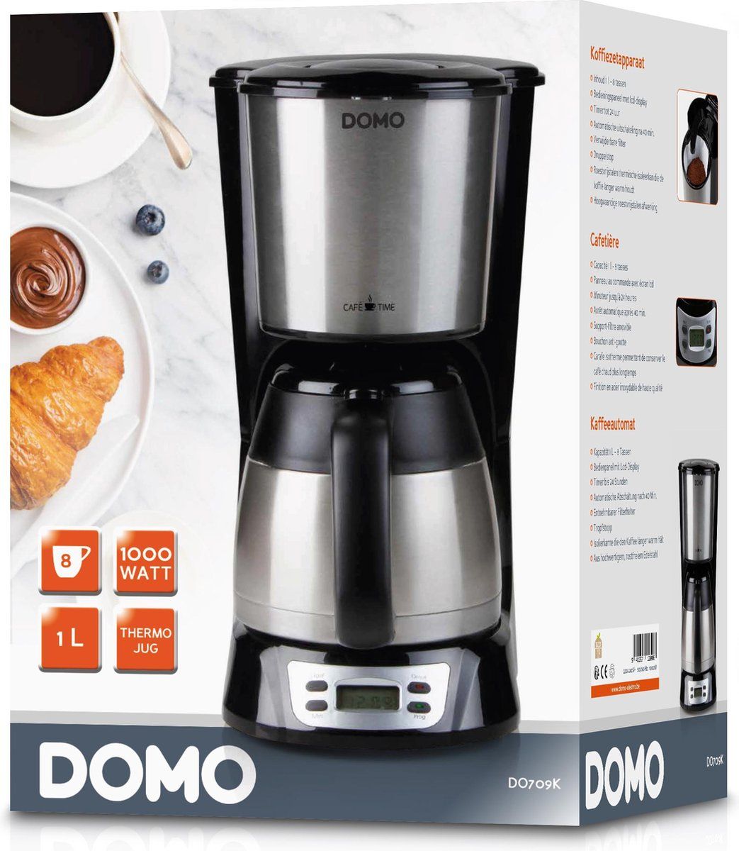 DOMO koffiezet DO709K zwart + inox, met timer, 1 Liter, 1000 W., warhoudkan