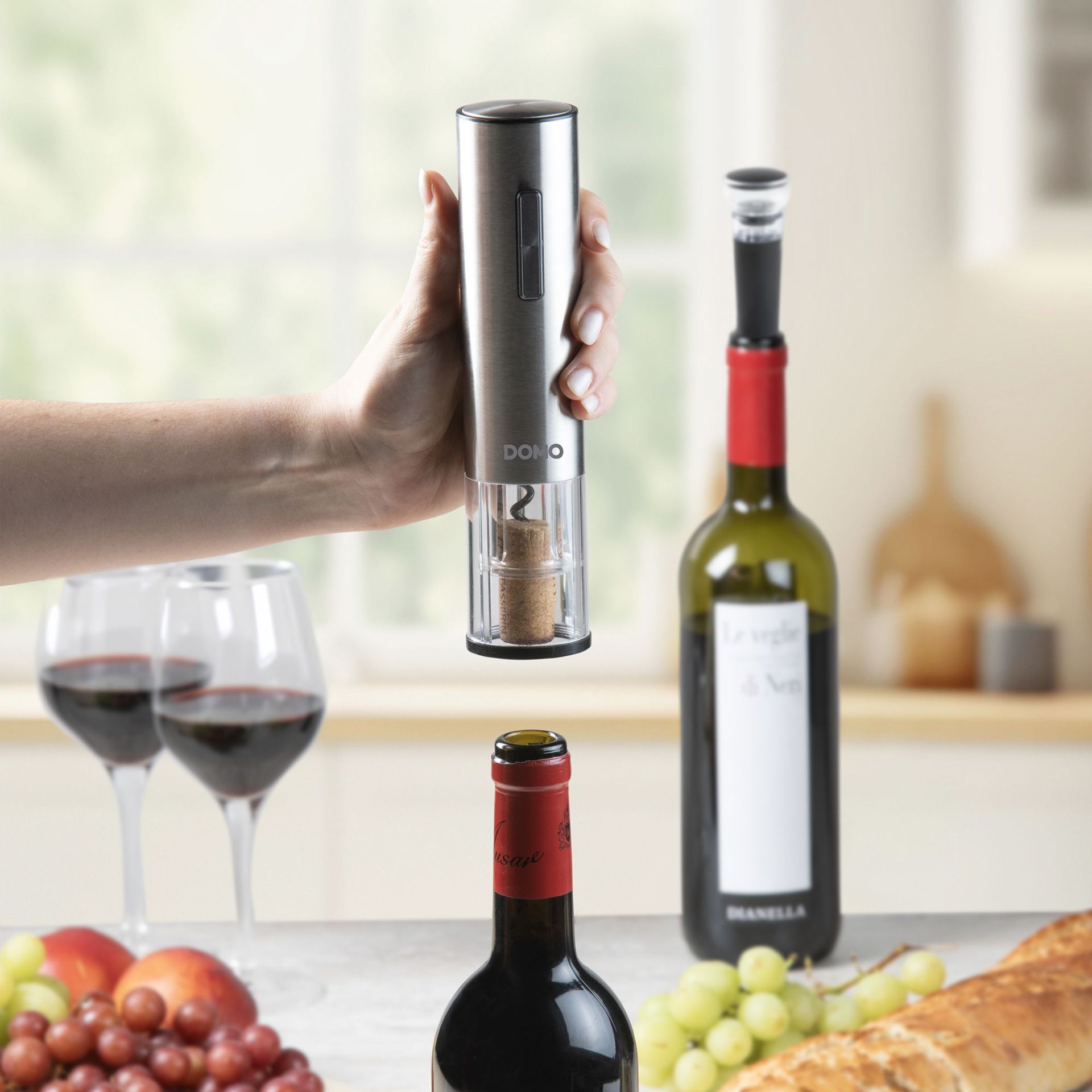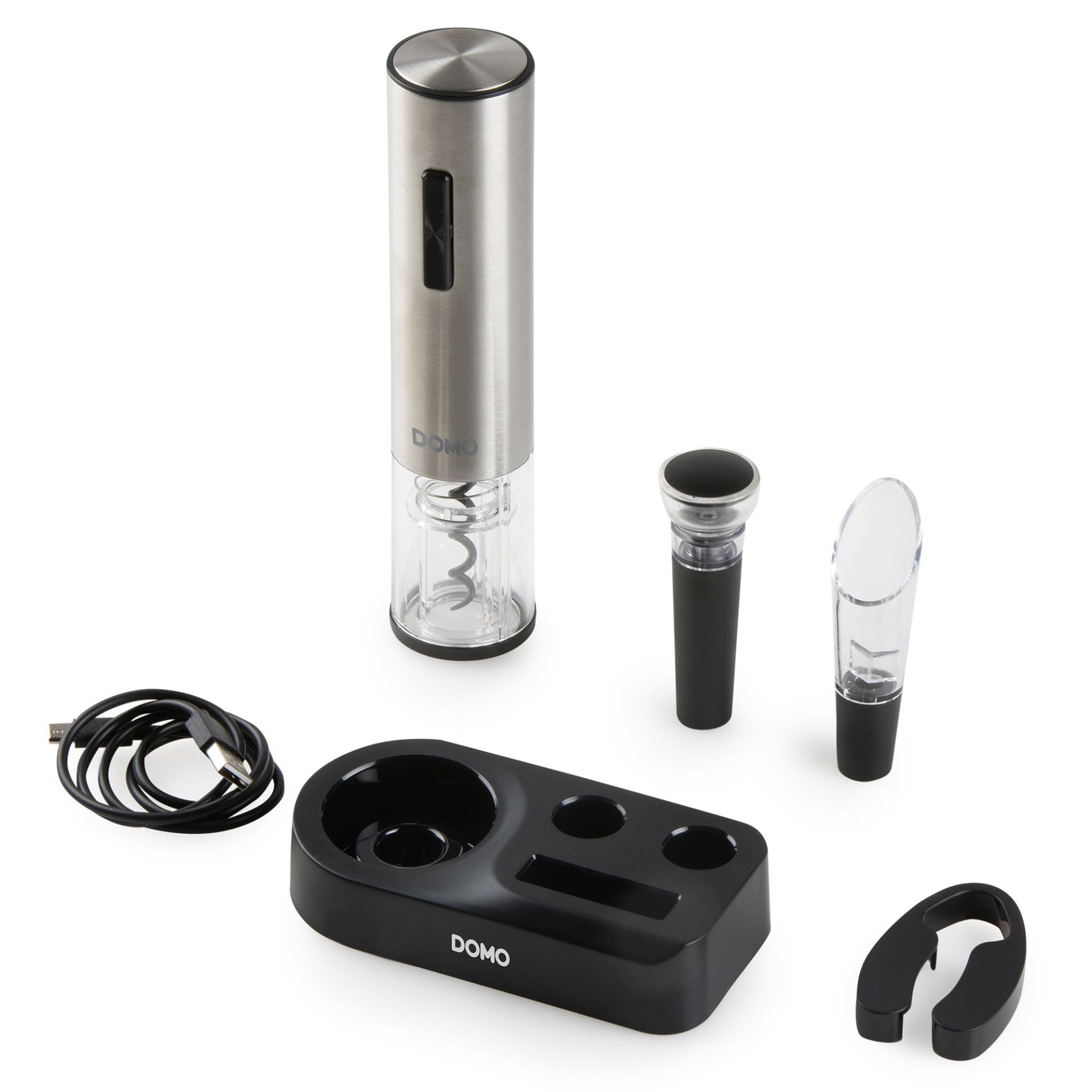 Domo Wijnopener Set Elektrisch DO3103 - Oplaadbaar - RVS - Led - met Basis