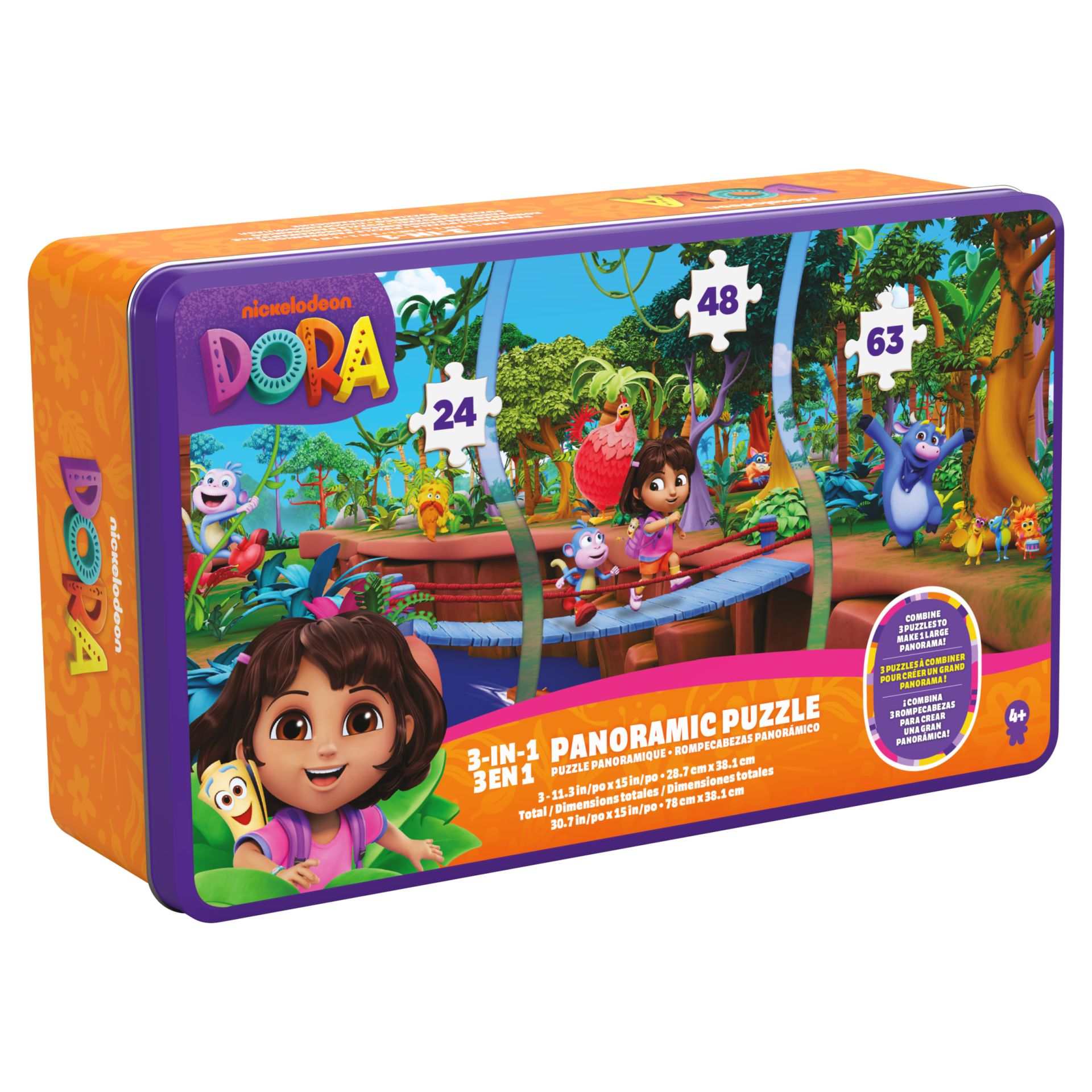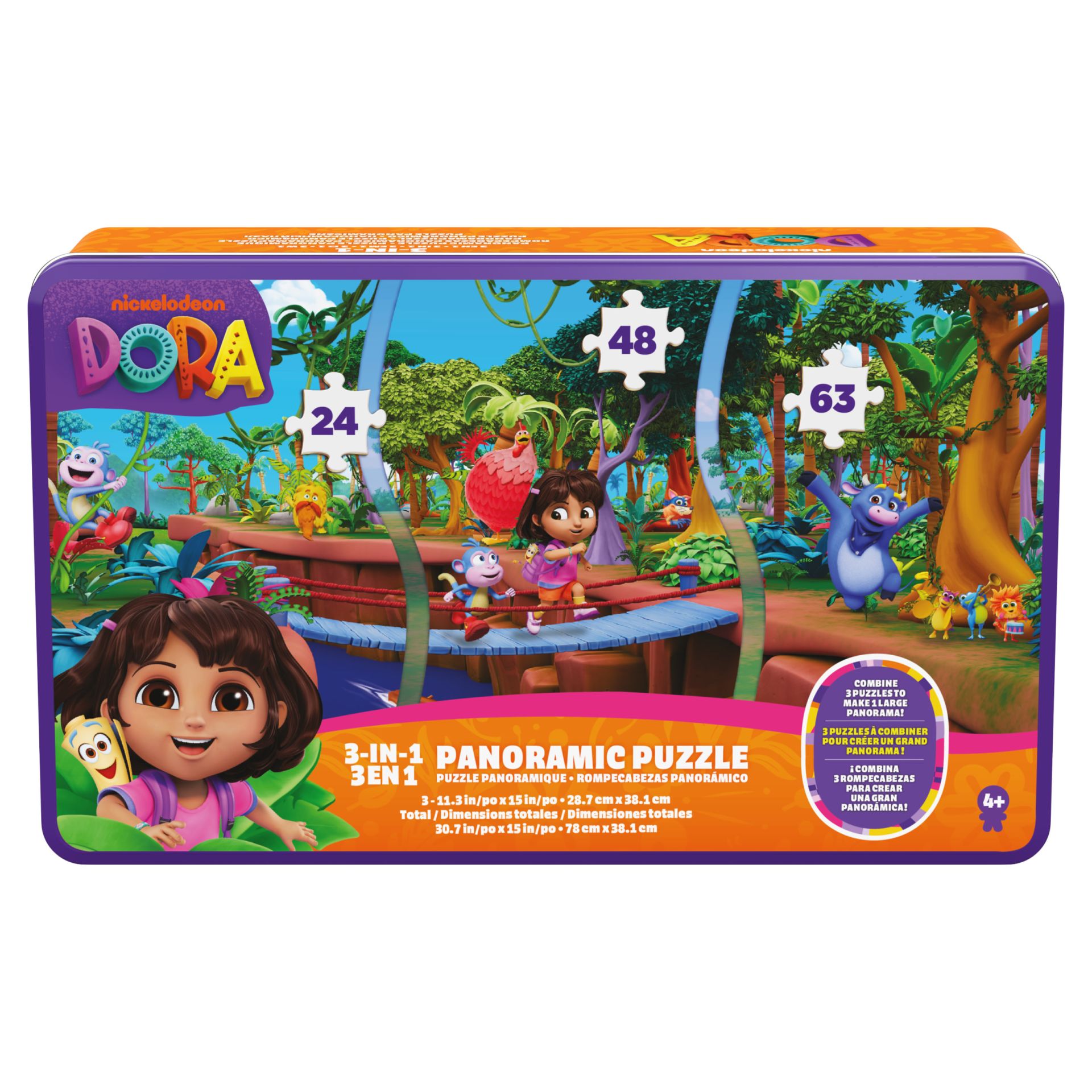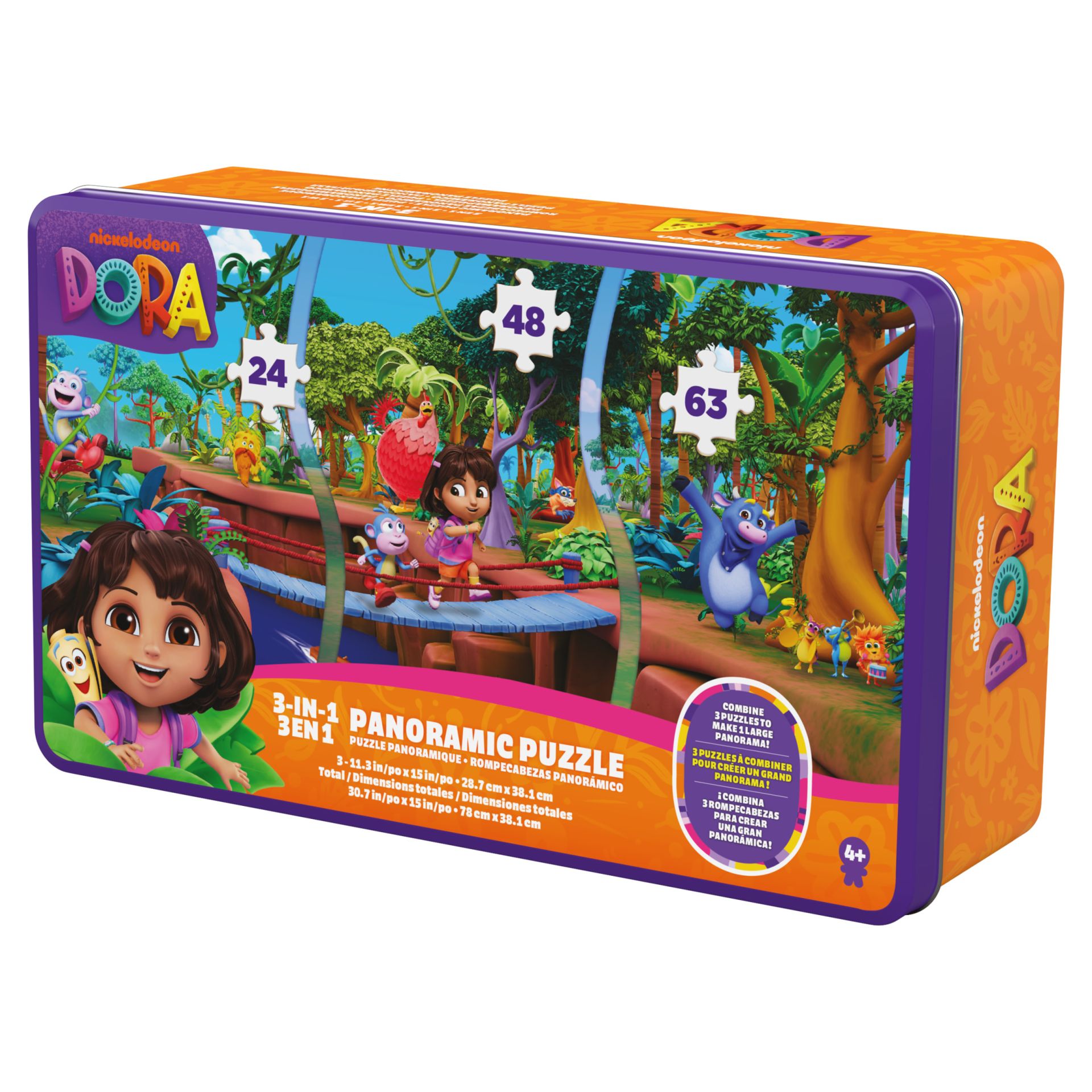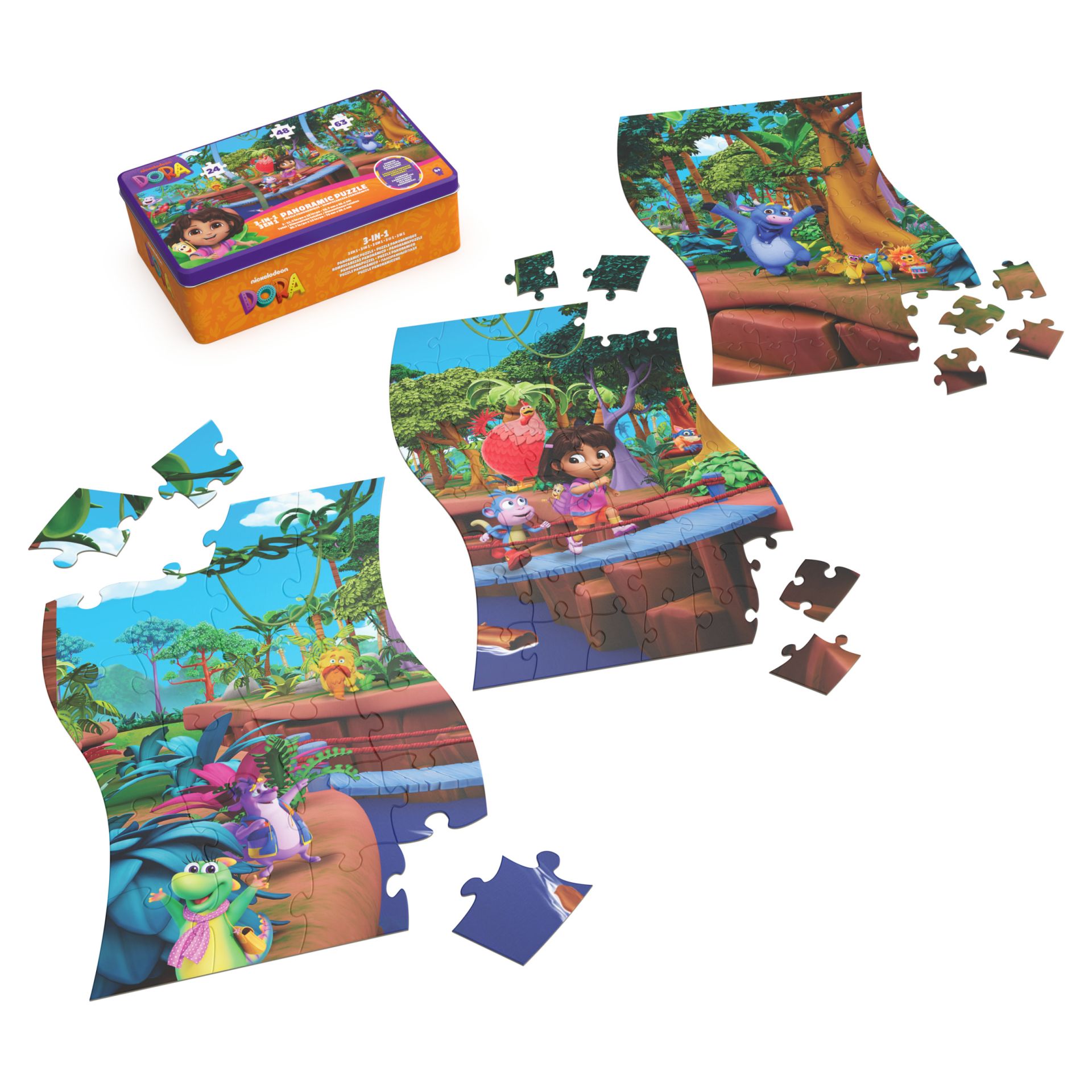 Dora - Panoramic 3 in 1 puzzel, 24,48 en 63 stuks