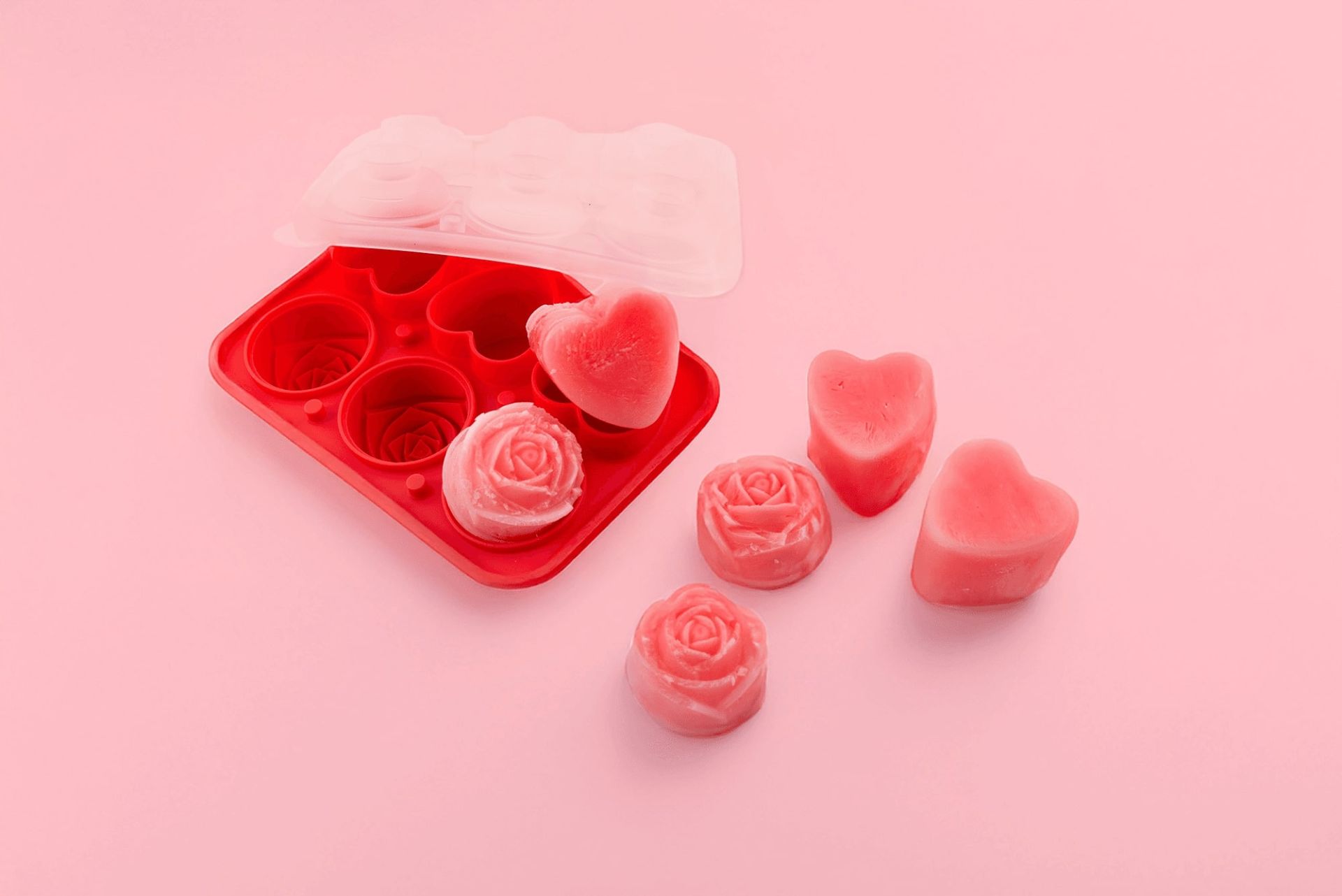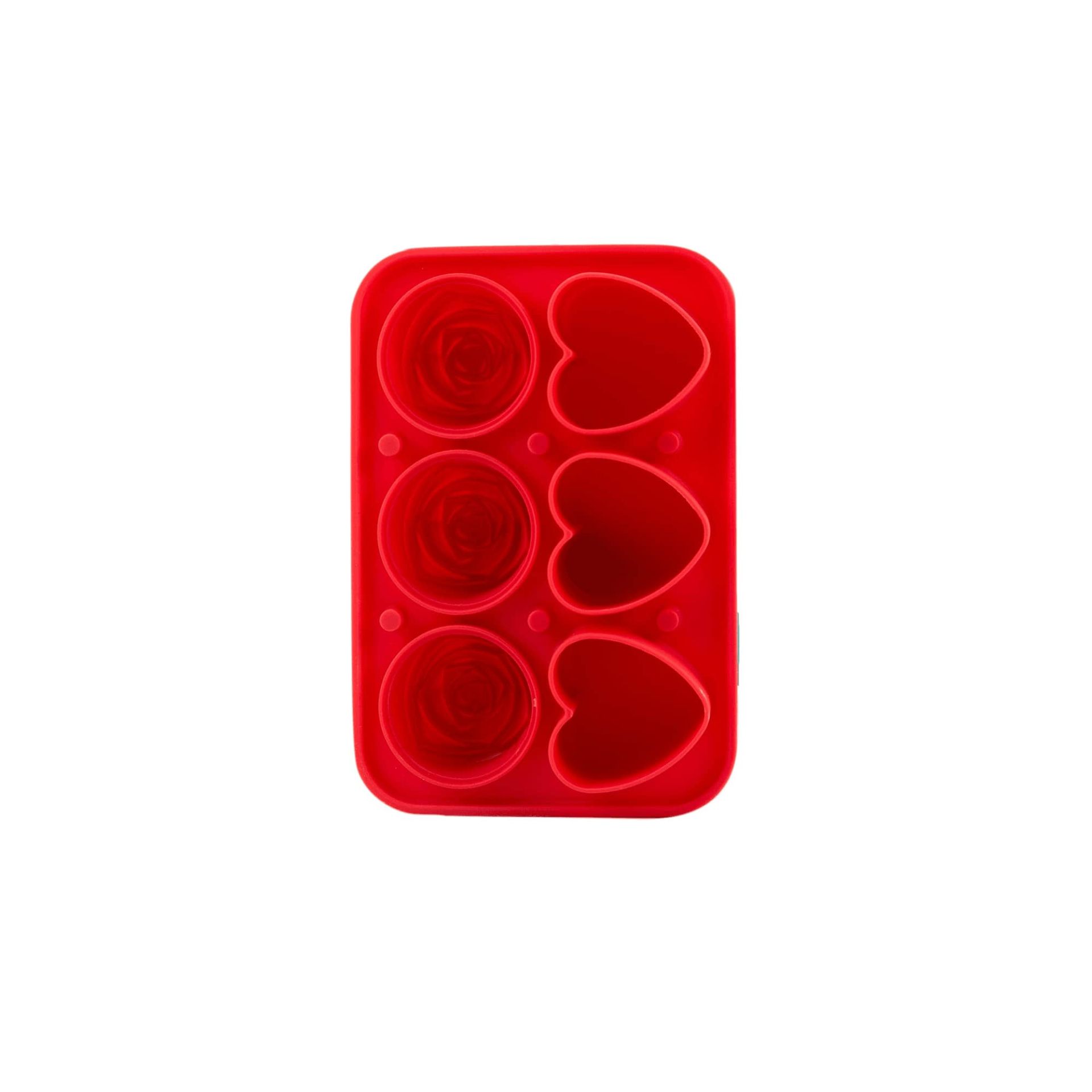 Dotz IJsblokjesvorm Rozen & Hartjes 17x12x5 cm - Platinum Silicone - voor 6 IJsblokjes