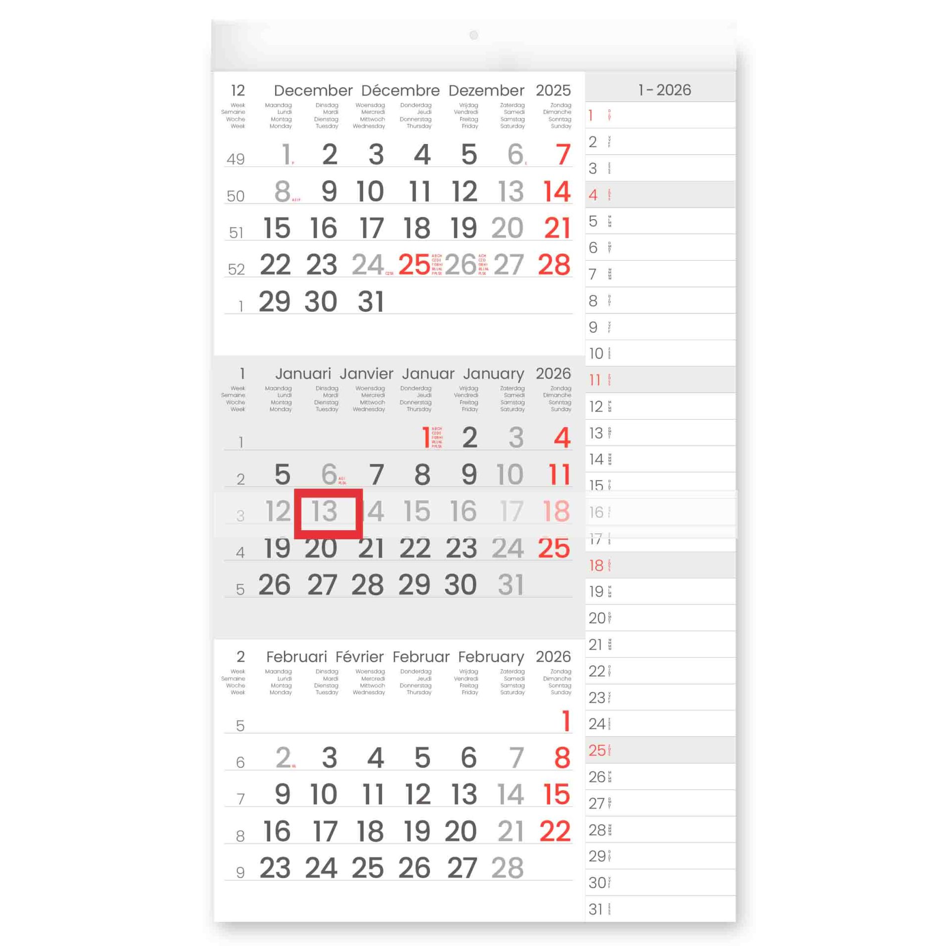 Driemaandkalender 2026 Manager Notes 29x50 cm