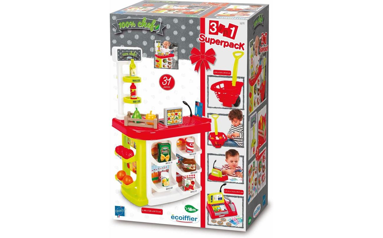 Ecoiffier 100% Chef 3in1 Superpack,31st Supermarkt met kassa en kar