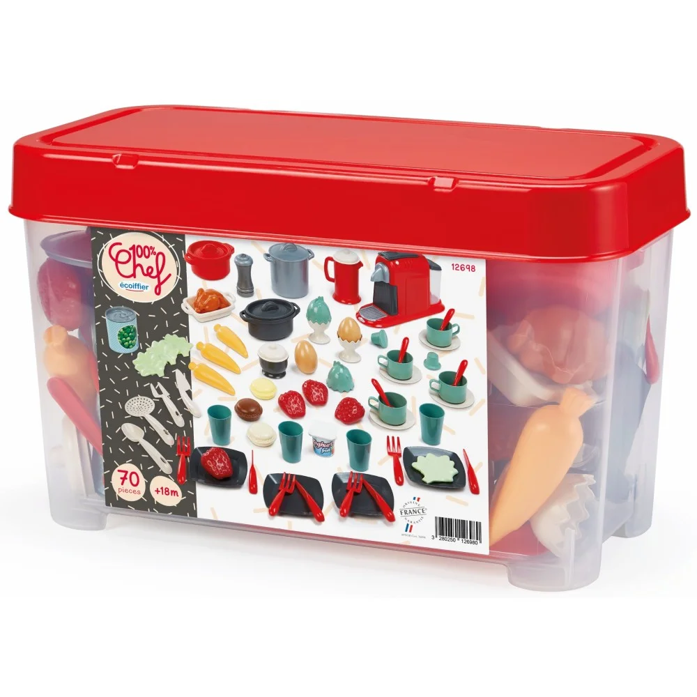 Ecoiffier 100% Chef Servies in Opbergkist 70-delig