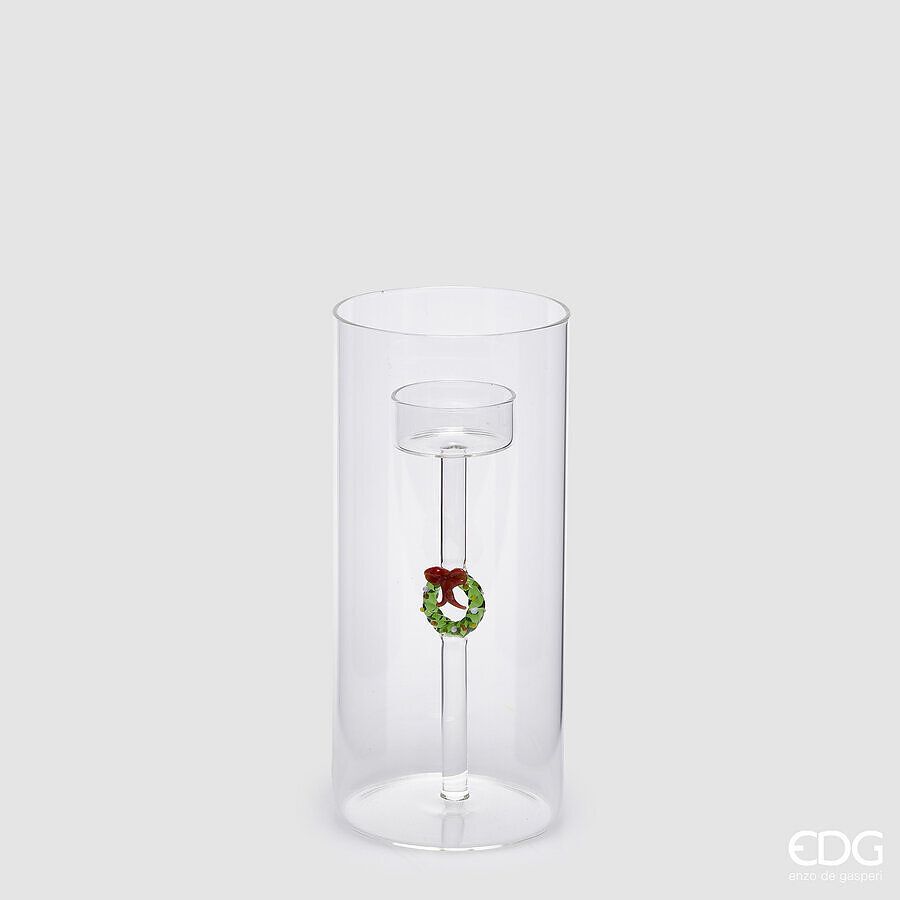 EDG Kandelaar Ghirlanda 9x20 cm - Glas - met Kerstkransje