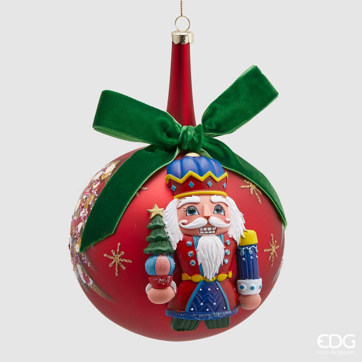 EDG Kerstbal Glas met Notenkraker 12 cm - Rood met Groene Strik