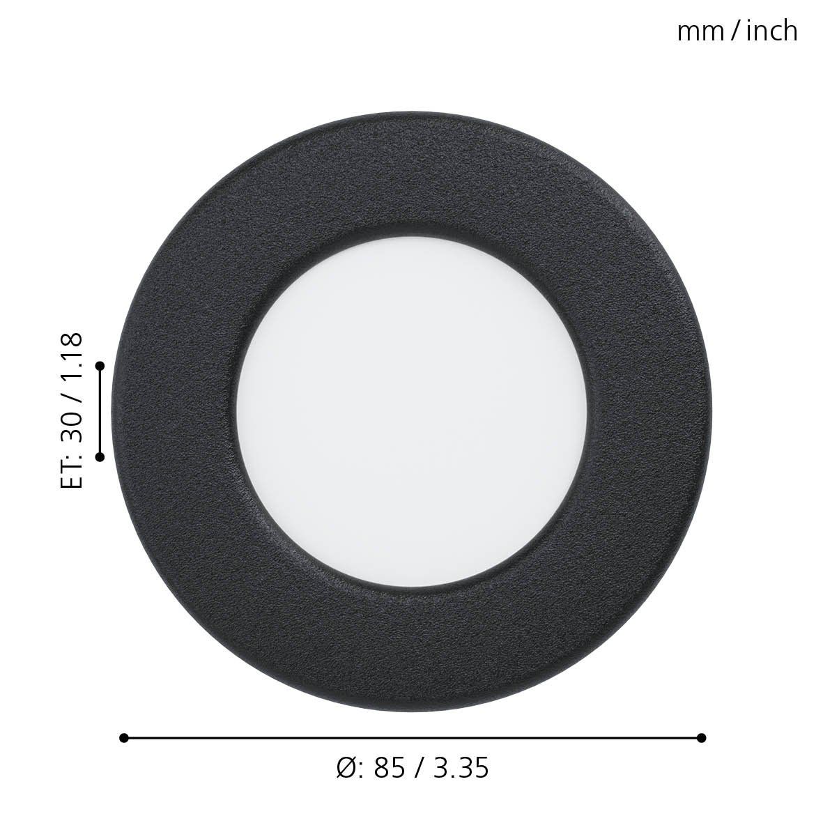 Eglo Fueva 5 Inbouwspot Badkamer Zwart Rond 86 mm IP44 2.7W 330lm 4000K