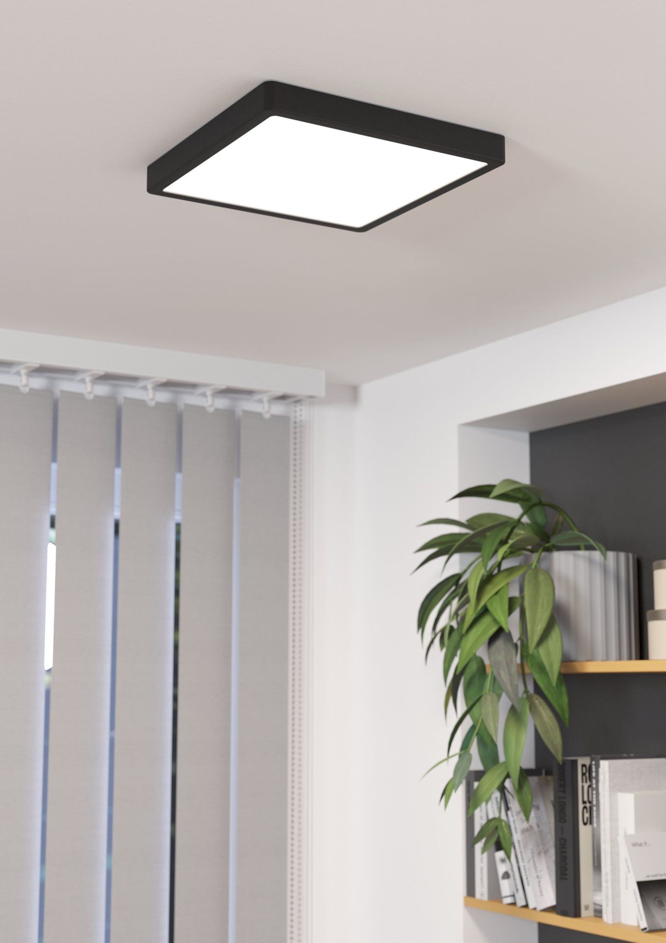 Eglo Fueva 5 Plafondlamp Badkamer Zwart Vierkant 285 mm IP44 20.5W 2400lm 3000K