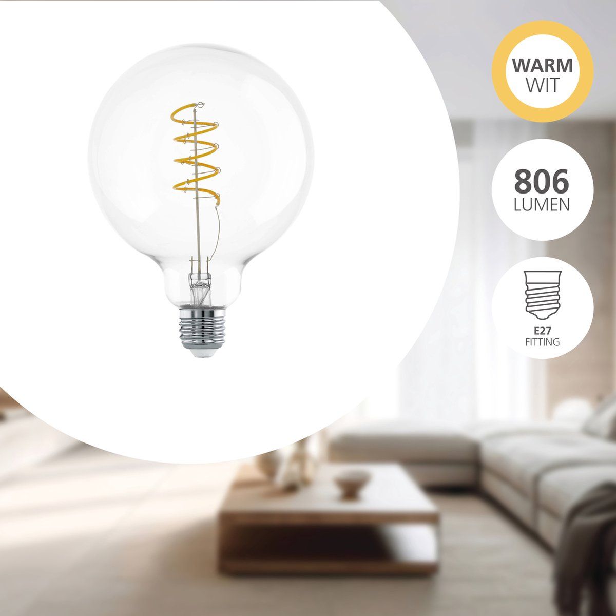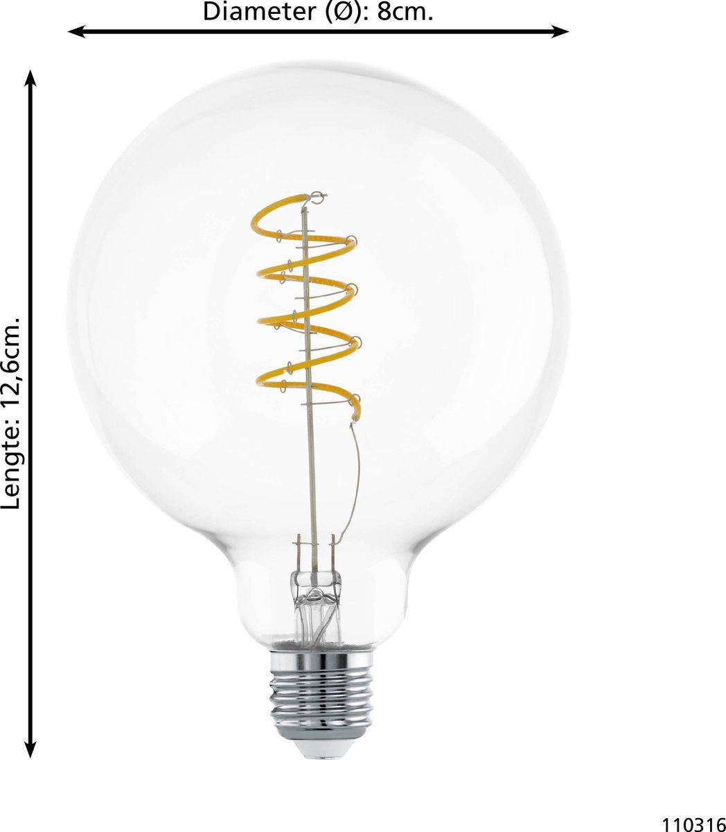 Eglo LED Bollamp G80 Filament Spiraal E27 7.3W 806lm 2700K