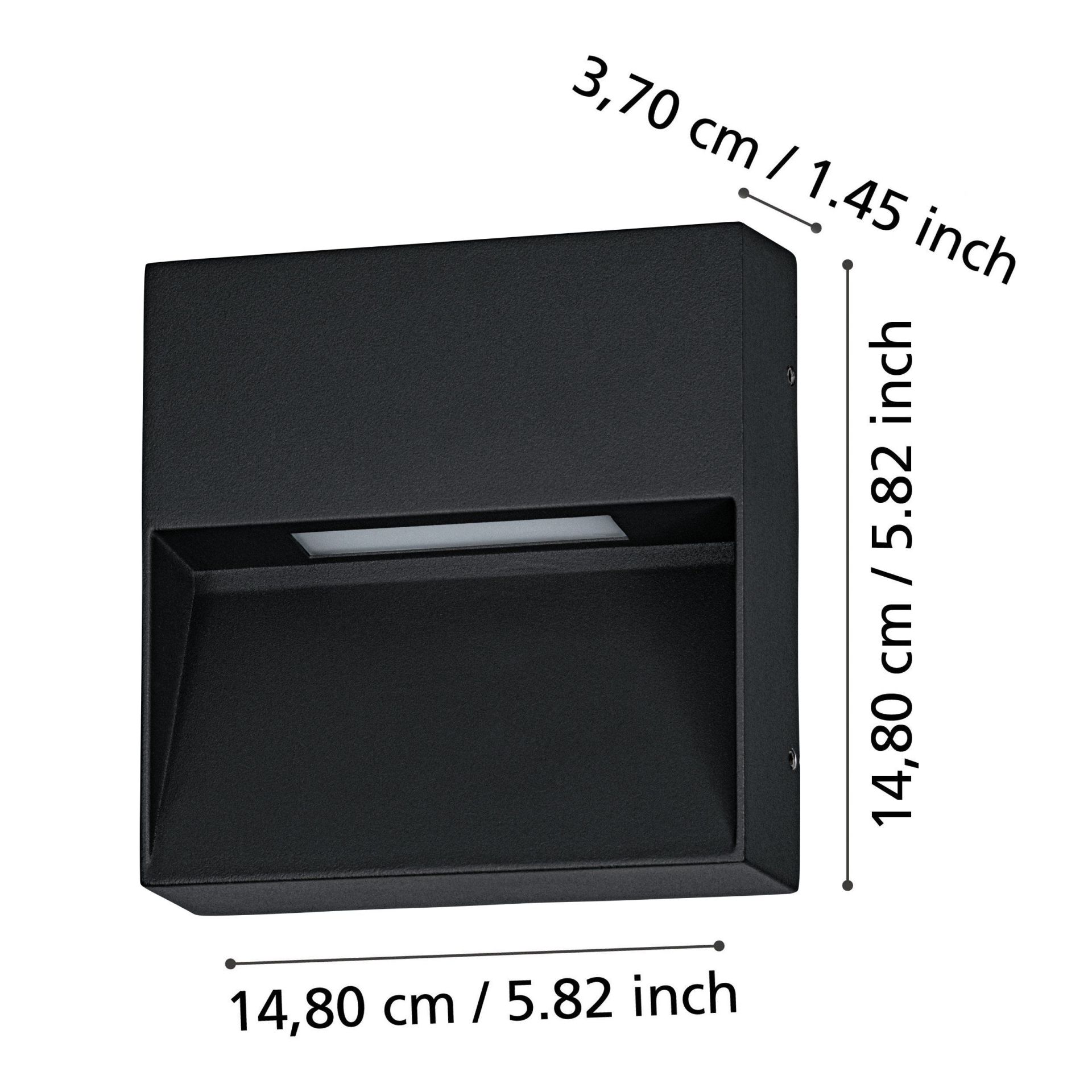 Eglo Maruggio Wandlamp Vierkant 1x LED 4.8W 520lm 3000-6500K IP65 Zwart