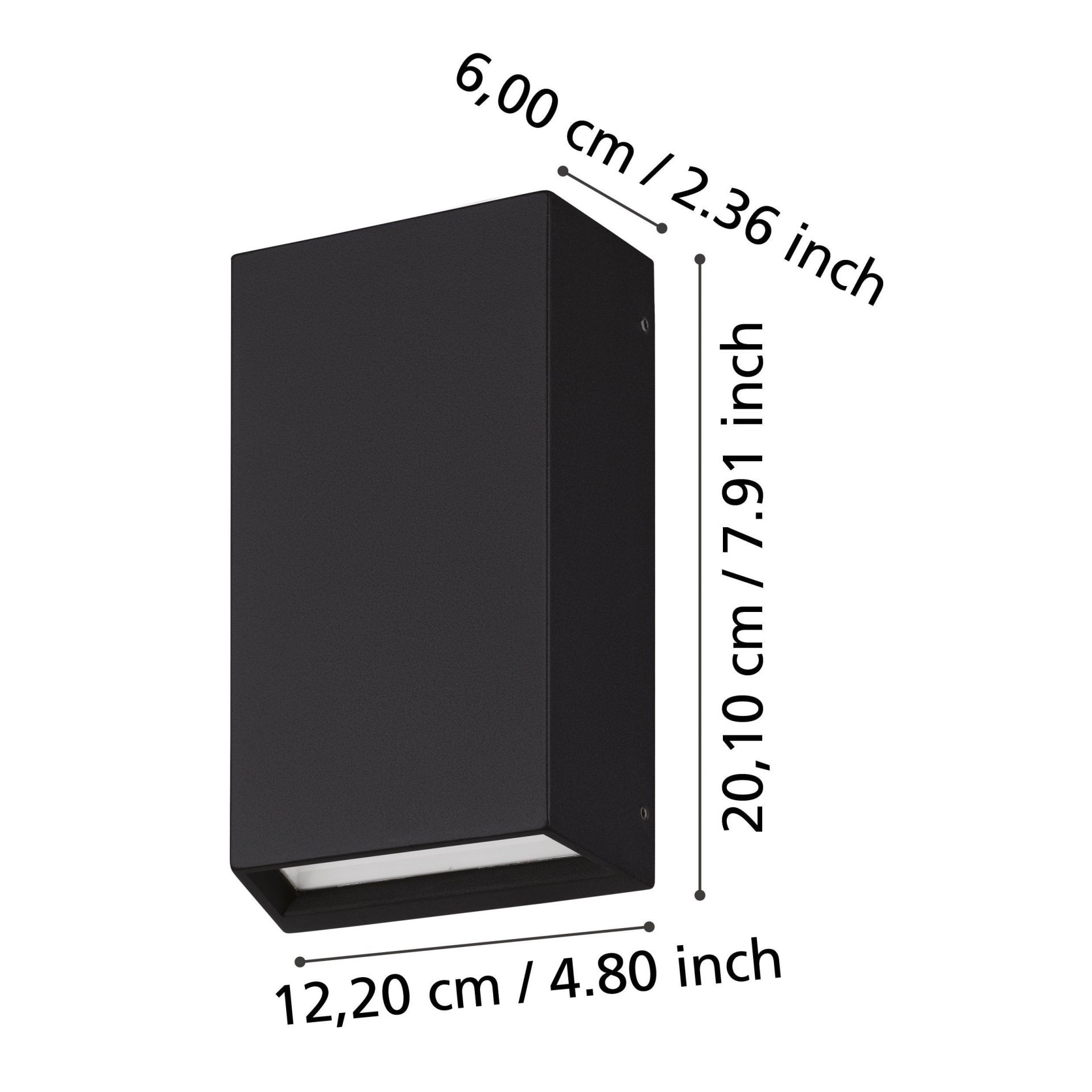 Eglo Spongano Wandlamp Verticaal Dubbel 2x LED 5W 600lm 3000-6500K IP65 Zwart