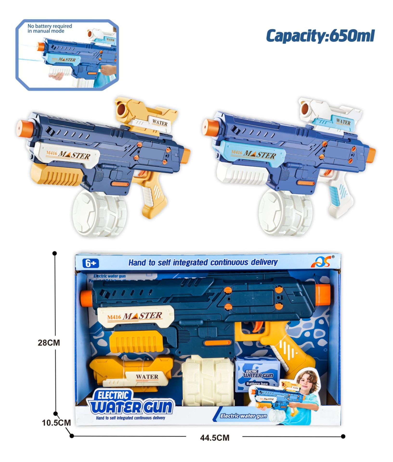Elektrisch Watergeweer 42 cm, 3.7 Volt USB oplaadbaar, 1200 mAh, schiet ook manueel