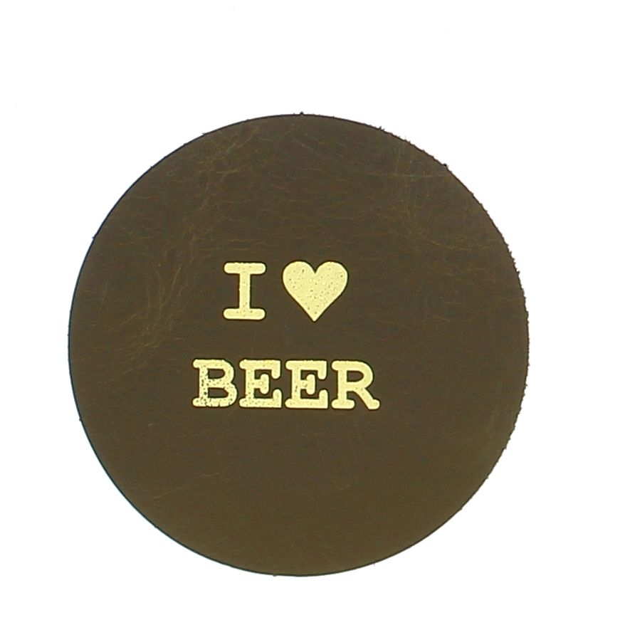 Enjoy Your Drink Glasonderzetter Leder Rond - Grey/Gold Beer