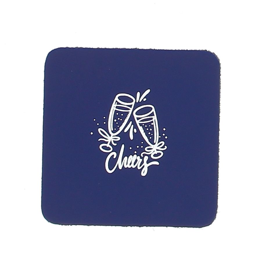 Enjoy Your Drink Glasonderzetter Leder Vierkant - Cobalt Blue/Silver Cheers