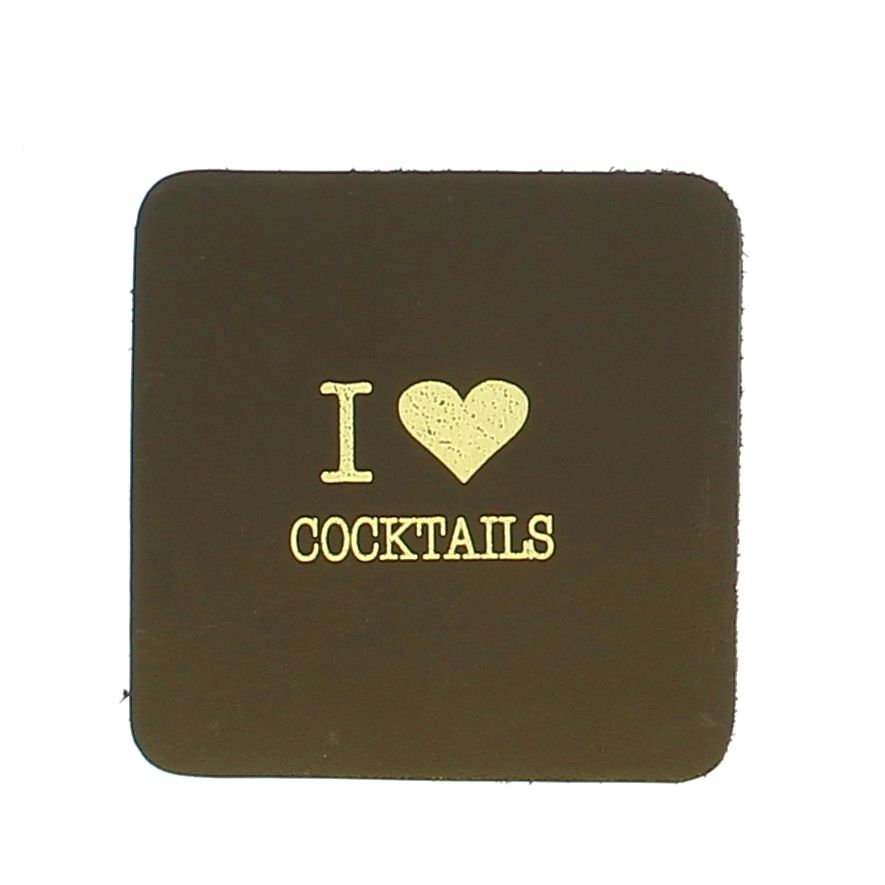 Enjoy Your Drink Glasonderzetter Leder Vierkant - Grey/Gold Cocktails