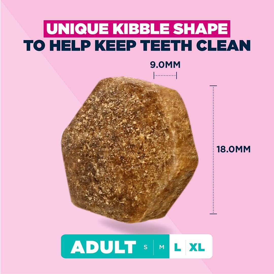 Unieke brokjesvorm en DentaDefense om de tanden schoon en gezond te helpen houden. Natuurlijke bronnen van omega 6 en 3 voor een gezonde huid en vacht. Speciaal afgestemd vezelmengsel met onder meer prebiotische FOS, MOS en bietenpulp draagt bij aan een gezonde spijsvertering. Calcium en glucosamine ter ondersteuning van gezonde botten en gewrichten. L-carnitine om vet te helpen verbranden.