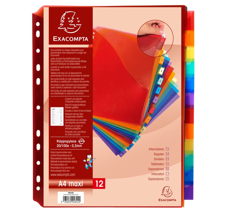 Exacompta Tabbladen A4 PP met L map 12 Tabs
