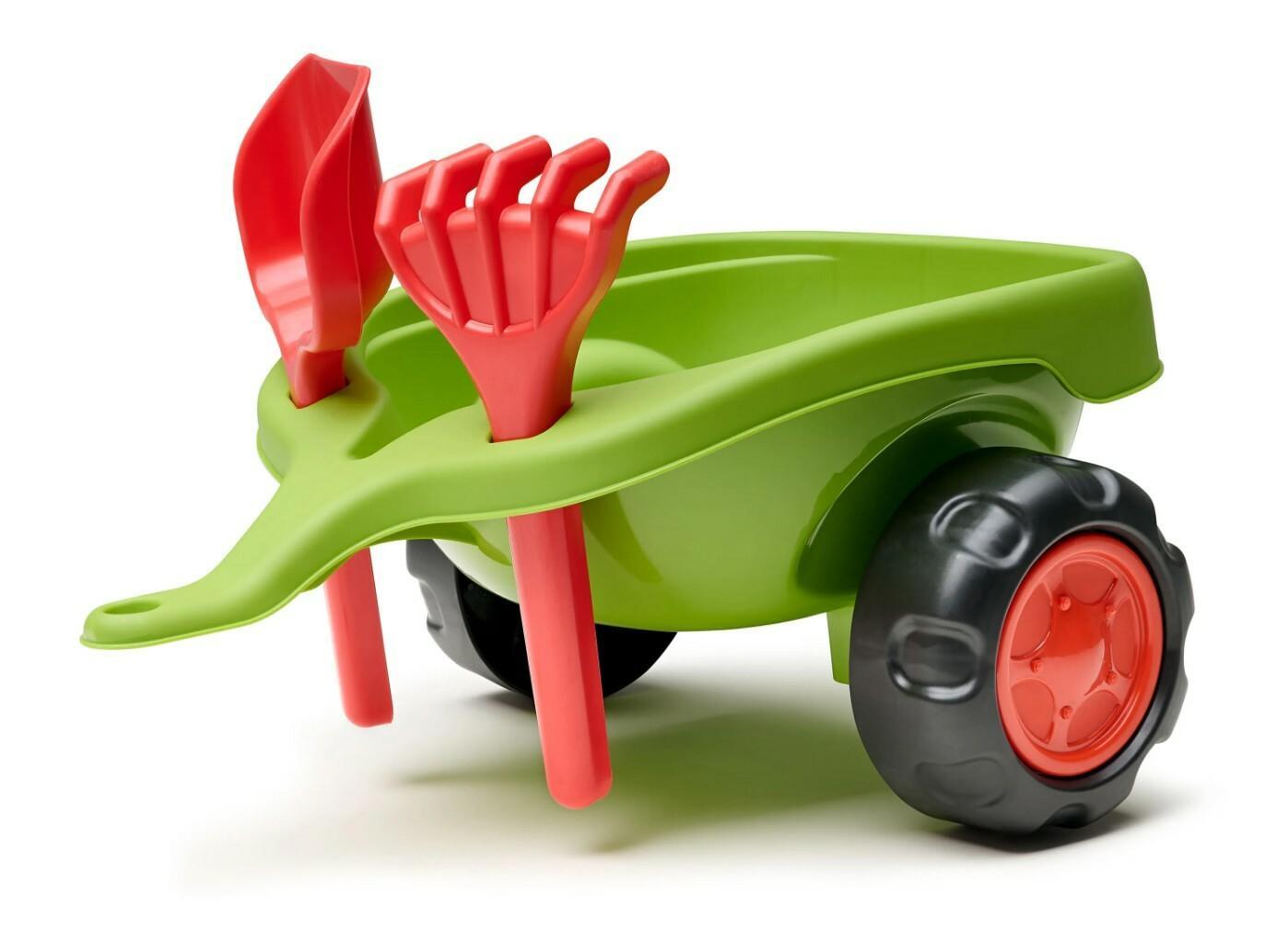 Falk Claas Looptractor met Aanhangwagen Groen met schopje en hark