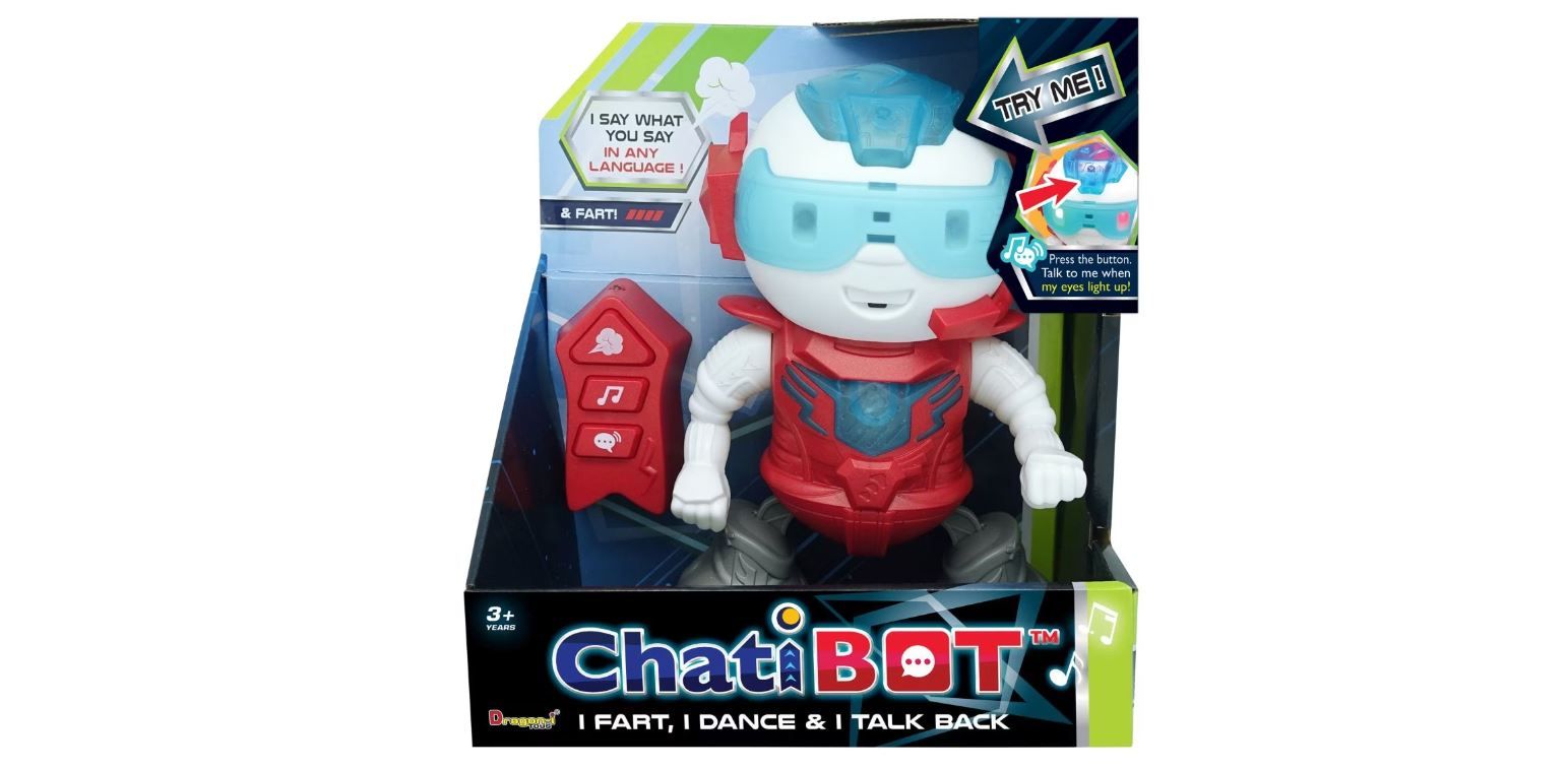 Fartibot, Robot 20 cm, Danst, Praat terug en laat scheetjes, met lichteffect