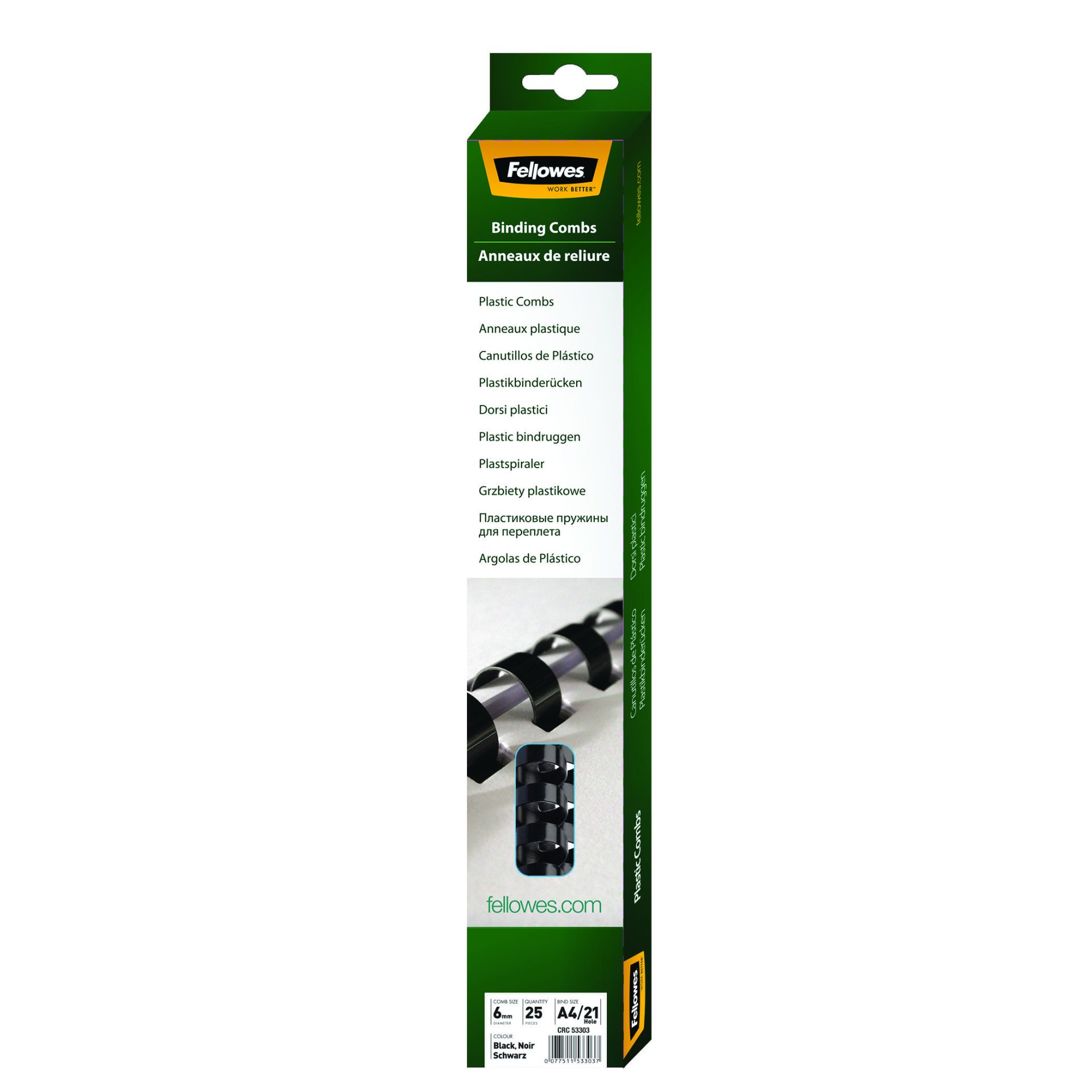Fellowes Plastic Comb 6MM A4 Black 25 stuks