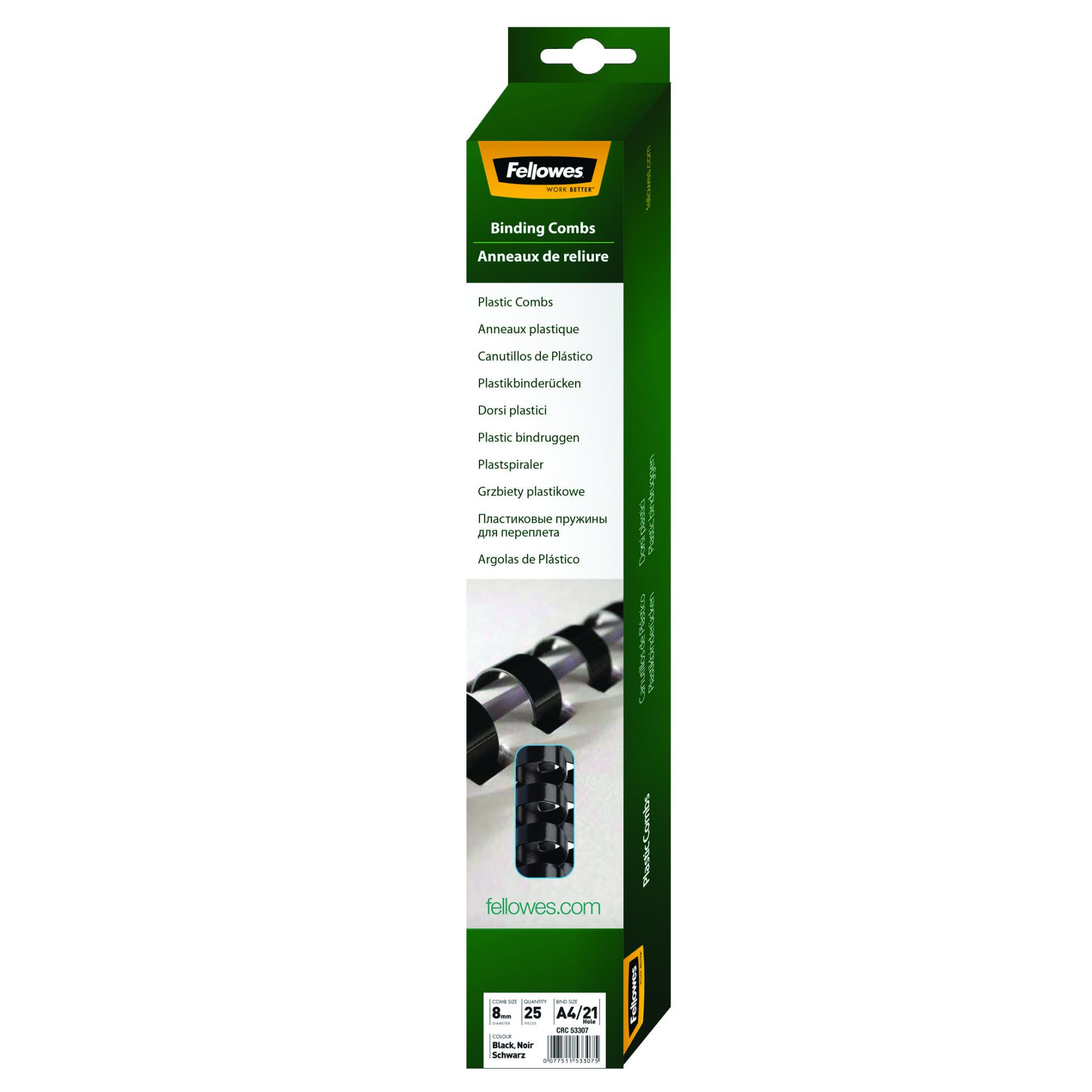 Fellowes Plastic Comb 8mm A4 Black 25 stuks