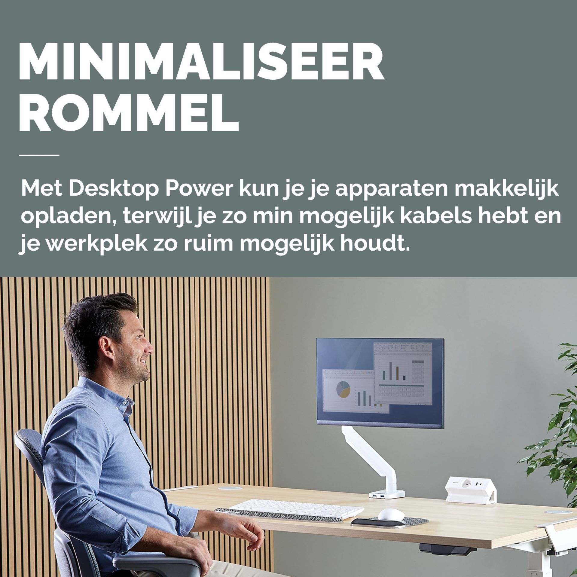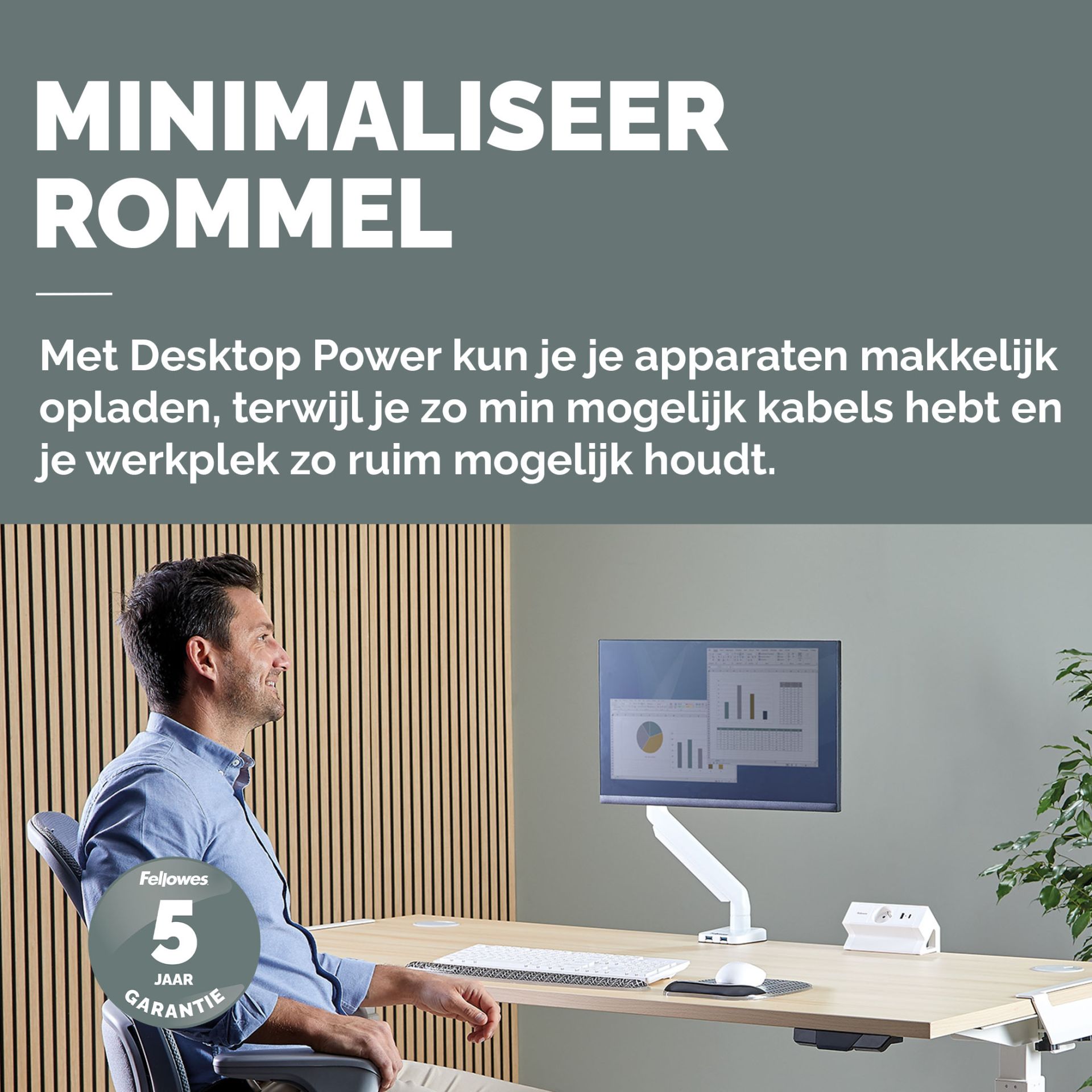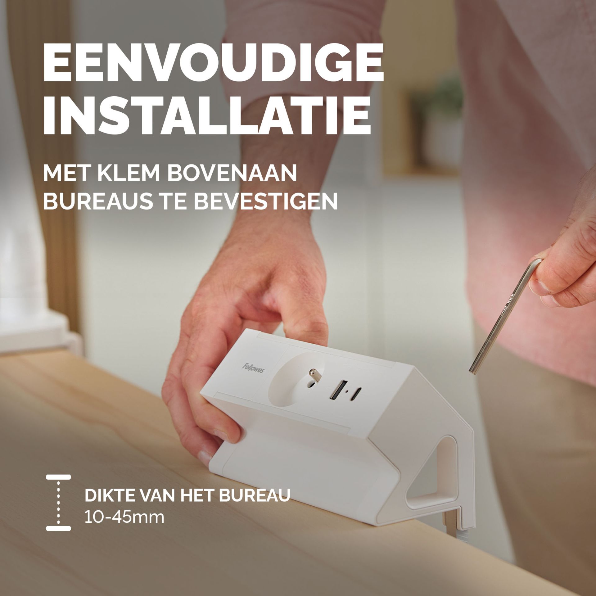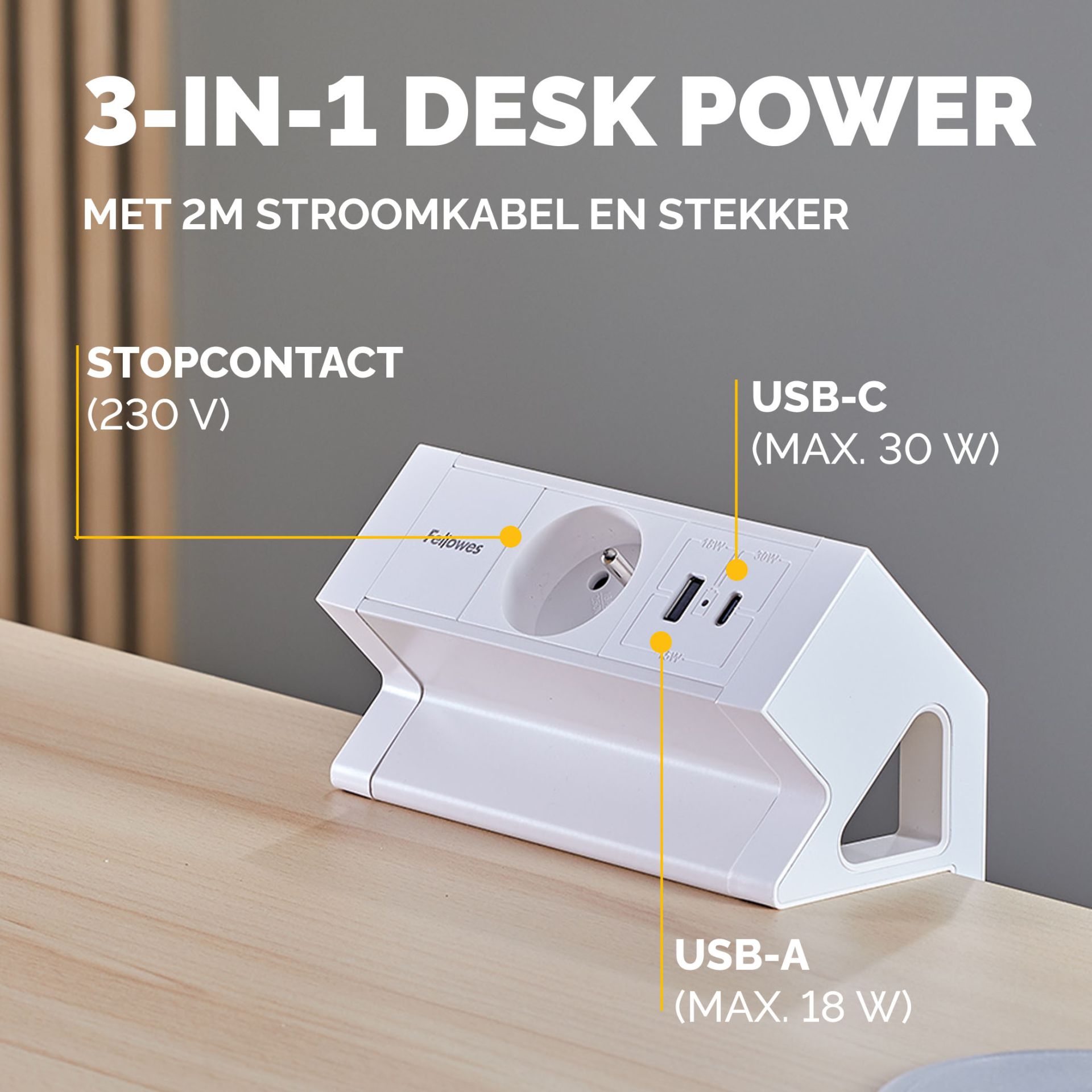 Fellowes Power Desk 1x230v - 1xUSB-A - 1xUSB-C - Kabel 2 m Wit