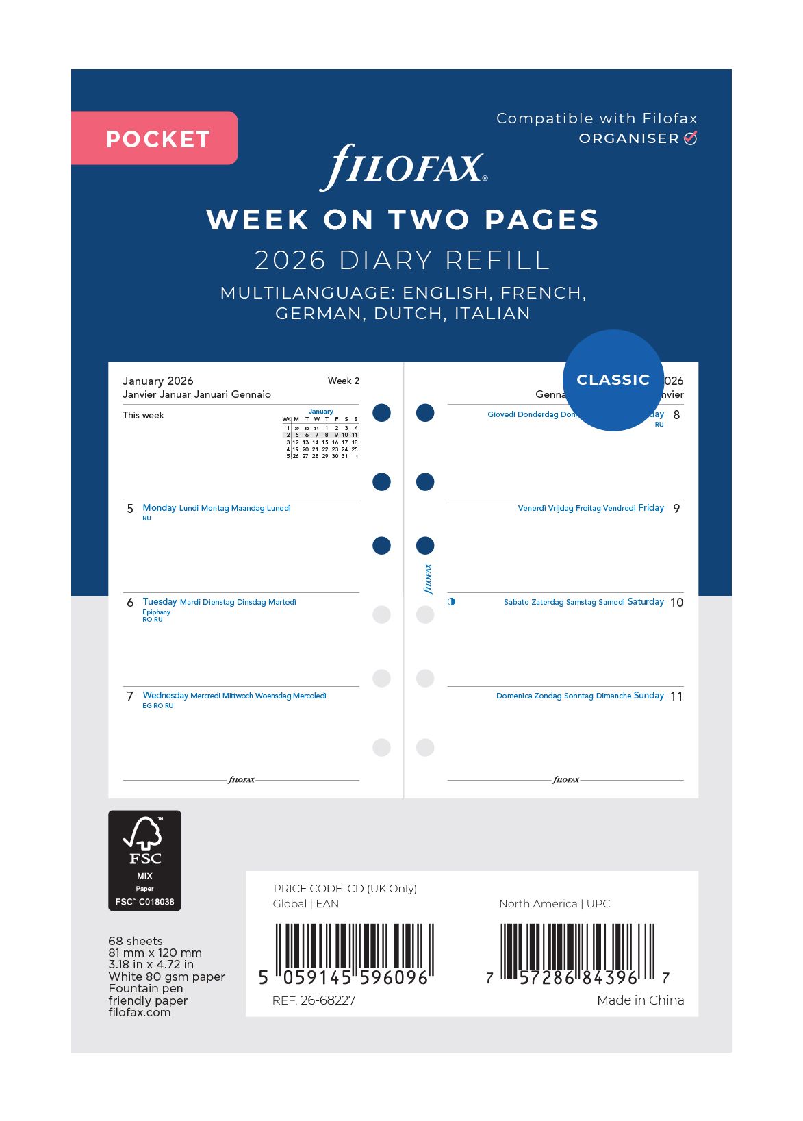 Filofax Agendavulling 2026 Pocket 1week/2pag 8.1x12 cm