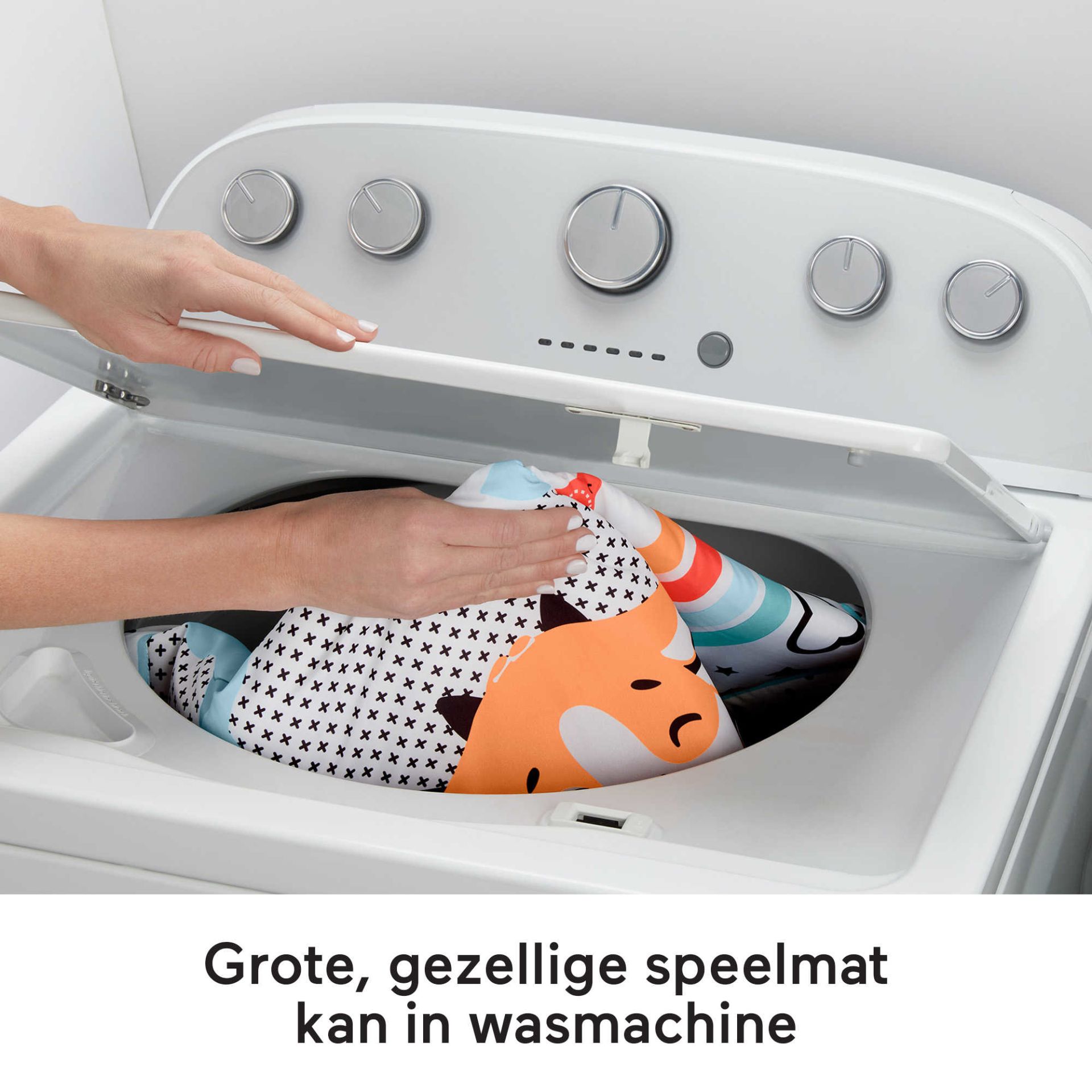 Grote speelmat van 76 x 76 cm met contrastrijke kleuren, die eenvoudig in de machine kan worden gewassen