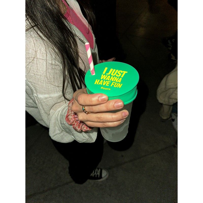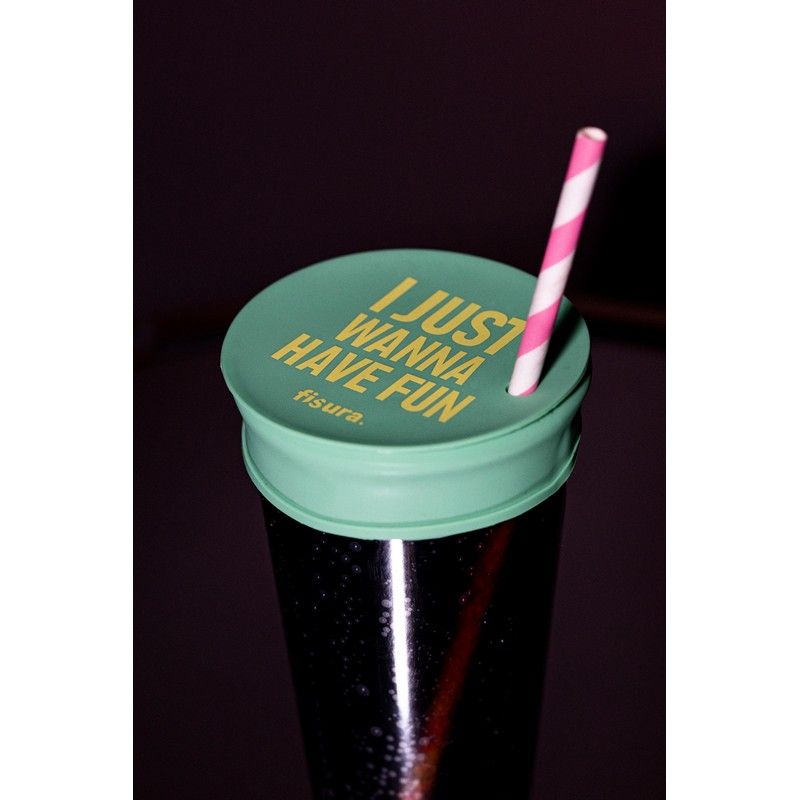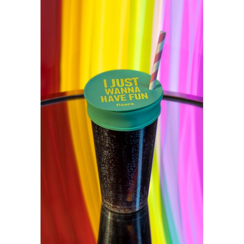 Fisura Deksel Groen voor Beker/Glas 7.5cm - I Just Wanna Have Fun - Flexibel