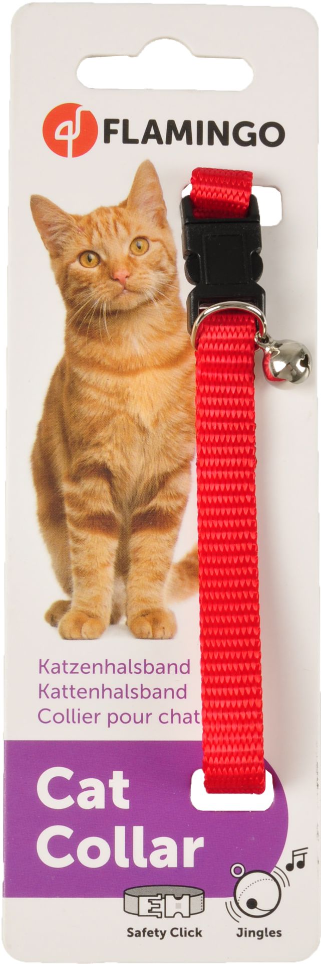Flamingo Asp Kattenhalsband met Bel 30 cm Rood